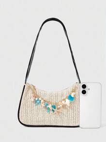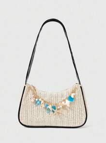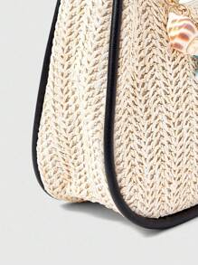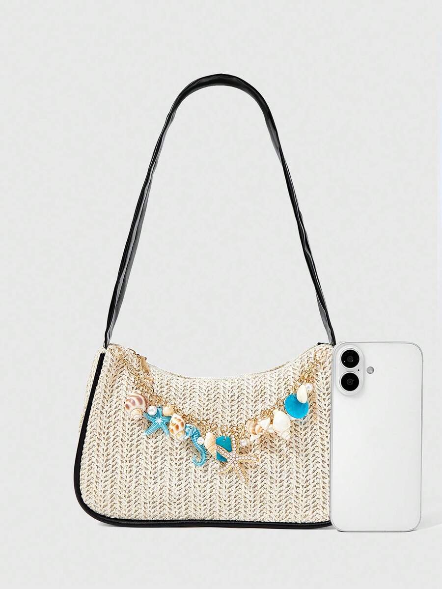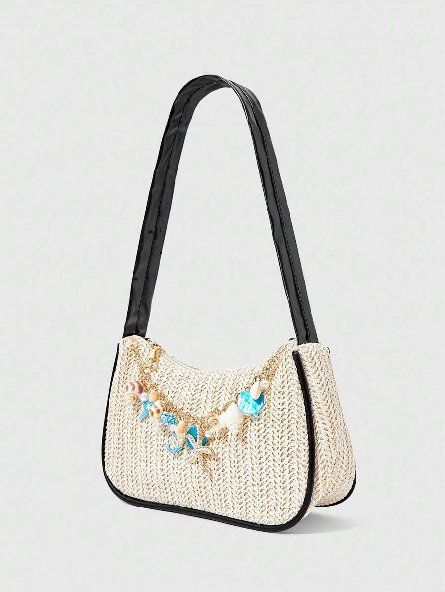 Fairycore طقم حقيبة شاطئ منسوجة مع الإكسسوارات، حقيبة كتف عطلة شاطئية عصرية مخصصة للنساء (تشمل حقيبة واحدة و طقم إكسسوارات واحد)
