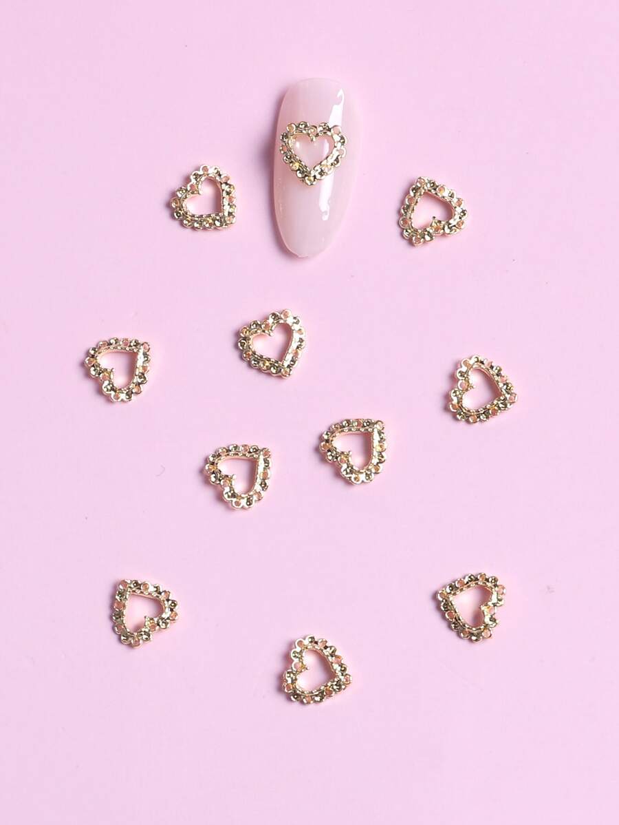 TSZS 10 قطع نقوش فن الأظافر على شكل قلب، تزيين أظافر DIY، فصوص وأحجار كريمة لأظافر، لوازم أظافر