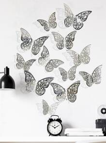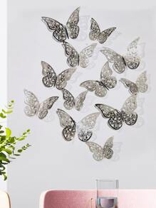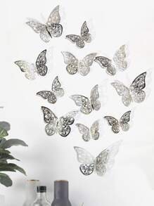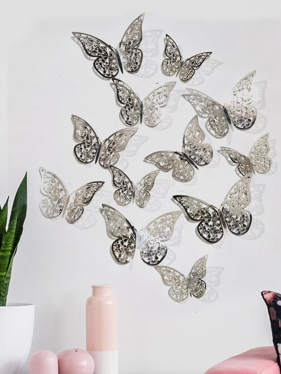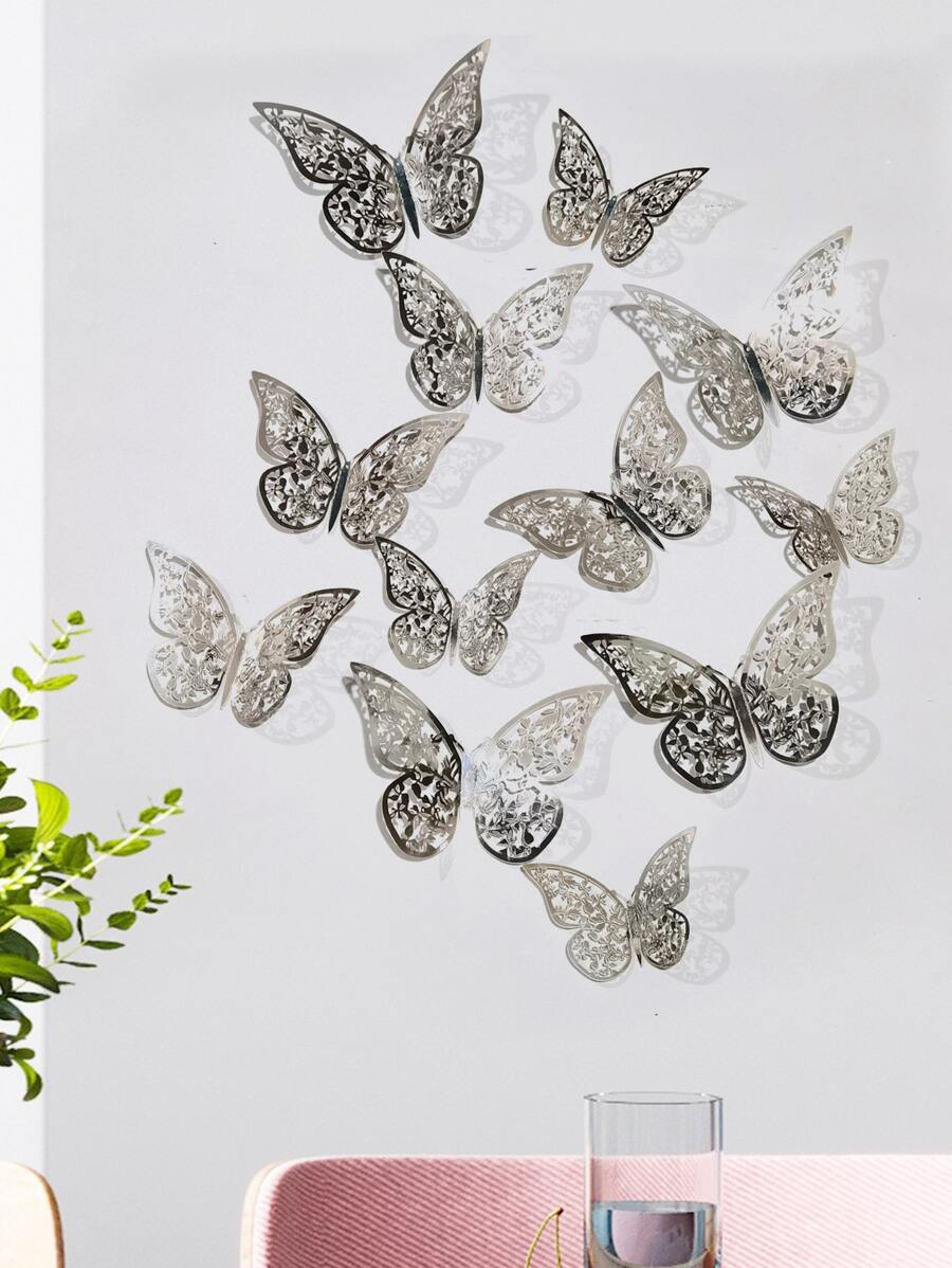 12 قطعة ملصقات فراشات جوفاء للحائط، ملصقات فراشات ورقية فضية لديكور المنزل، ملصقات، ديكور الحائط، ديكور فينيل للديكورات المنزلية، عناصر ديكور الربيع لتحديث منزلك، ملصقات ديكور رامة هدايا عيد الميلاد والتخرج