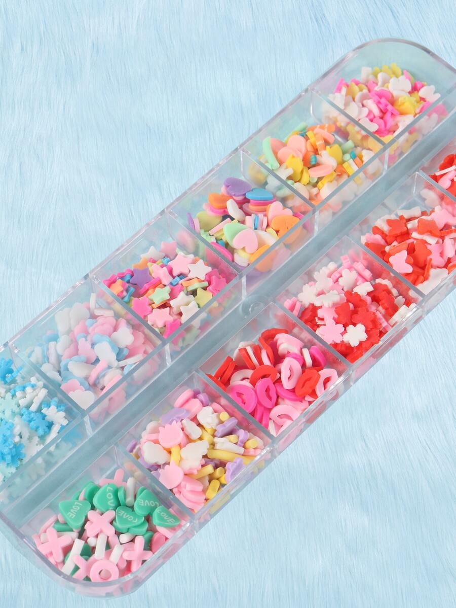 مزخرفة فن الأظافر بتصميم نجمة وقلب ثلاثي الأبعاد
