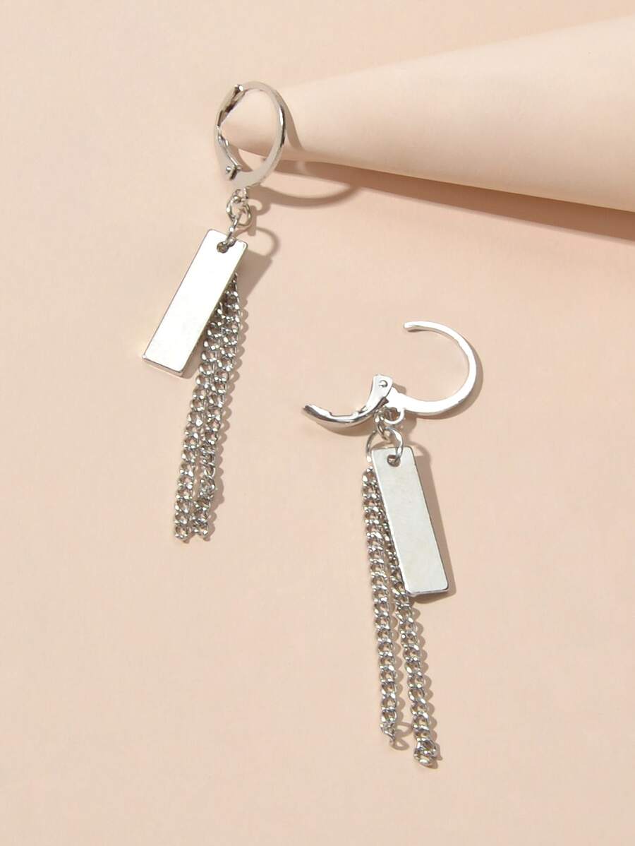 اقراط متدلي معدني مستطيل وسلسلة زودج واحد