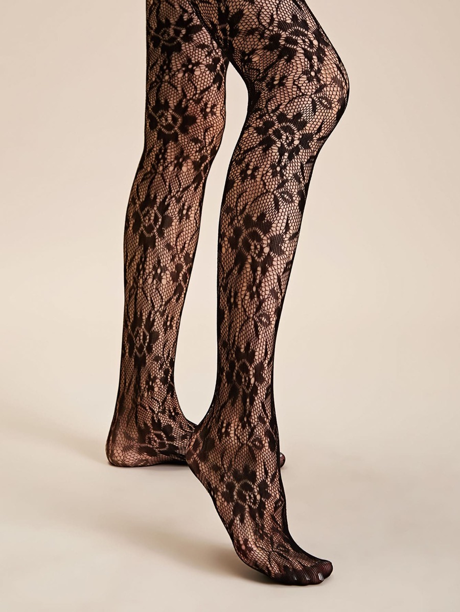 جوارب طويل بقص مجوف شبكي مزهر زوج واحد