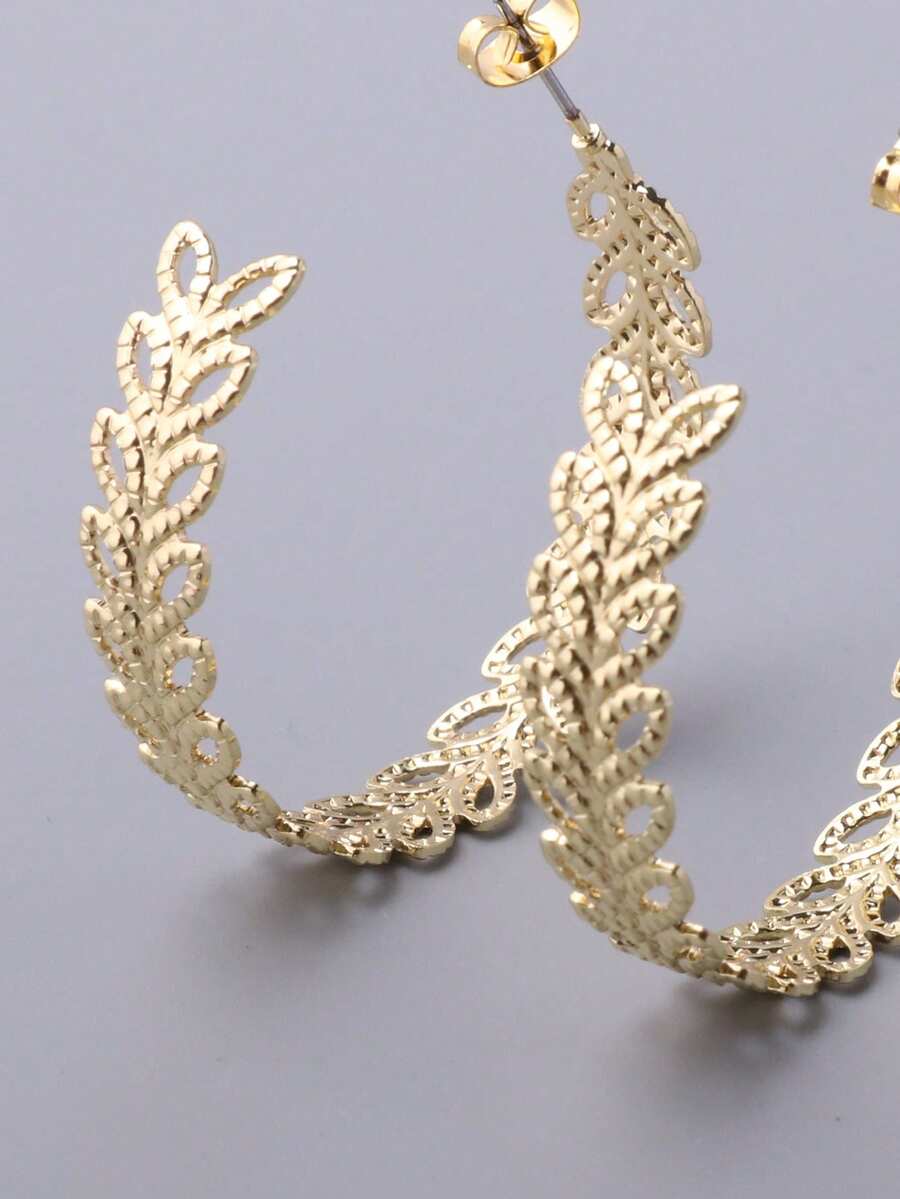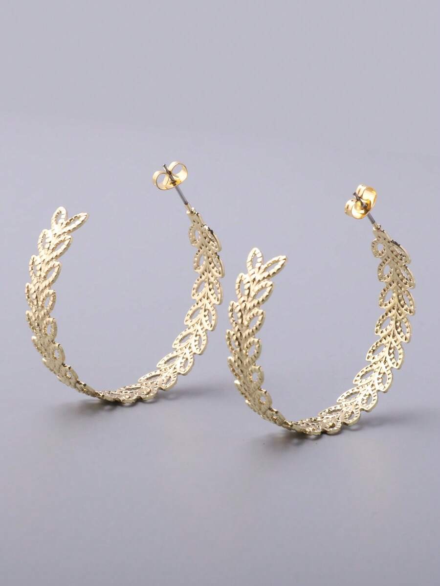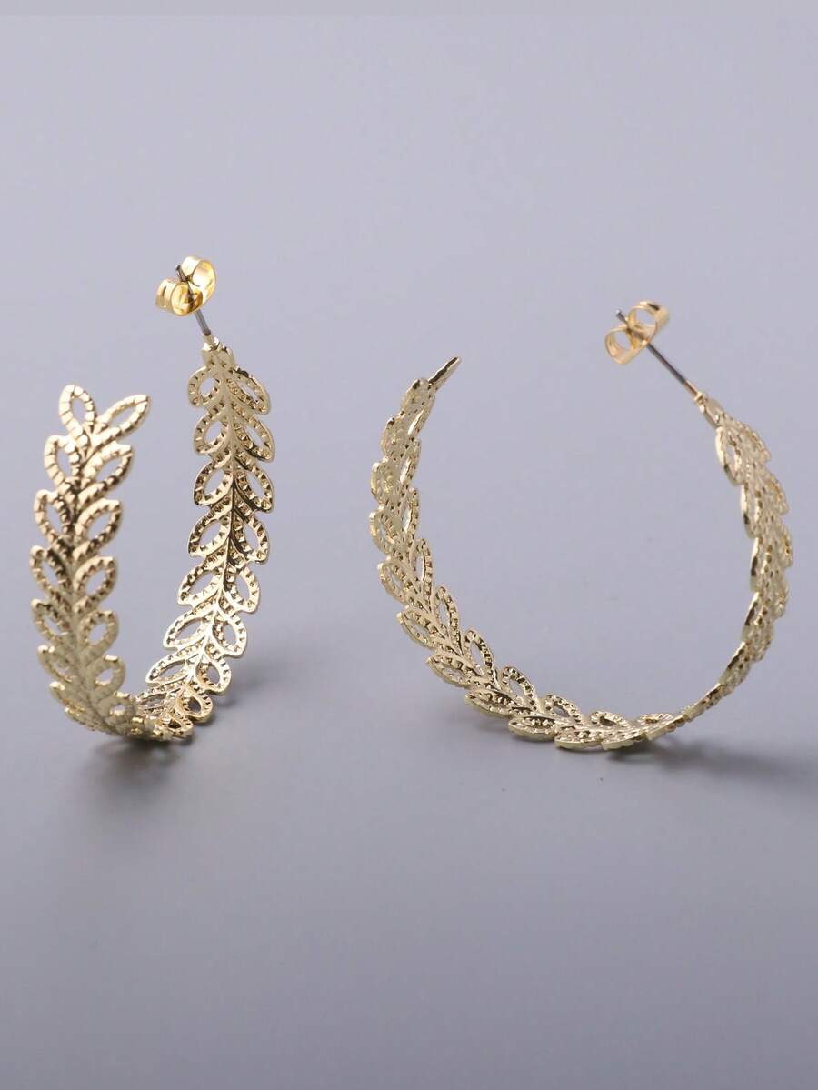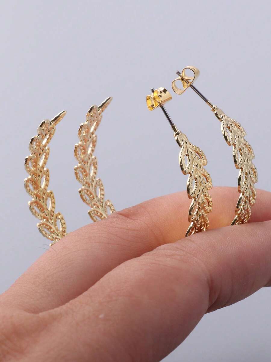 أقراط ورقة C-شكل مطلية بالذهب زوج واحد، مجوهرات بسيطة وجذابة أوروبية واميركية