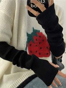 زوج من قفازات نسائية سوداء محبوكة بدون أصابع، قفازات دافئة عصرية للارتداء اليومي في الخريف والشتاء، إكسسوارات حفلة هالوين، قفازات شتوية قفازات باردة عيد الحب Y2k