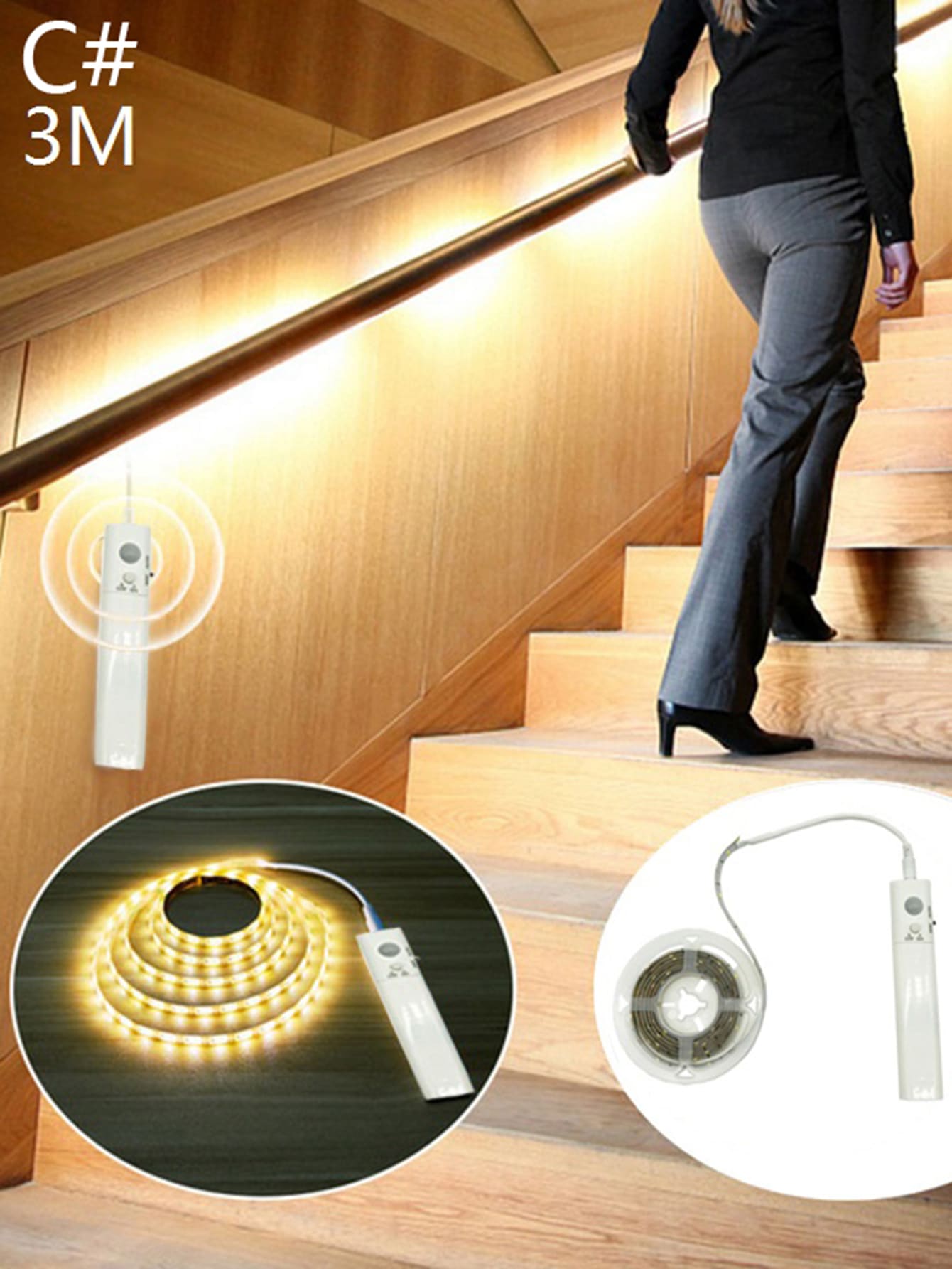 قطعة واحدة 1M/2M/3M 30/60/90 LED IP65 ضد للماء دافئ أبيض مصباح مستشعر بطارية صندوق مصباح شريط الى الرواق إضاءة , بجانب السرير طاولة إضاءة , خزانة الثياب إضاءة