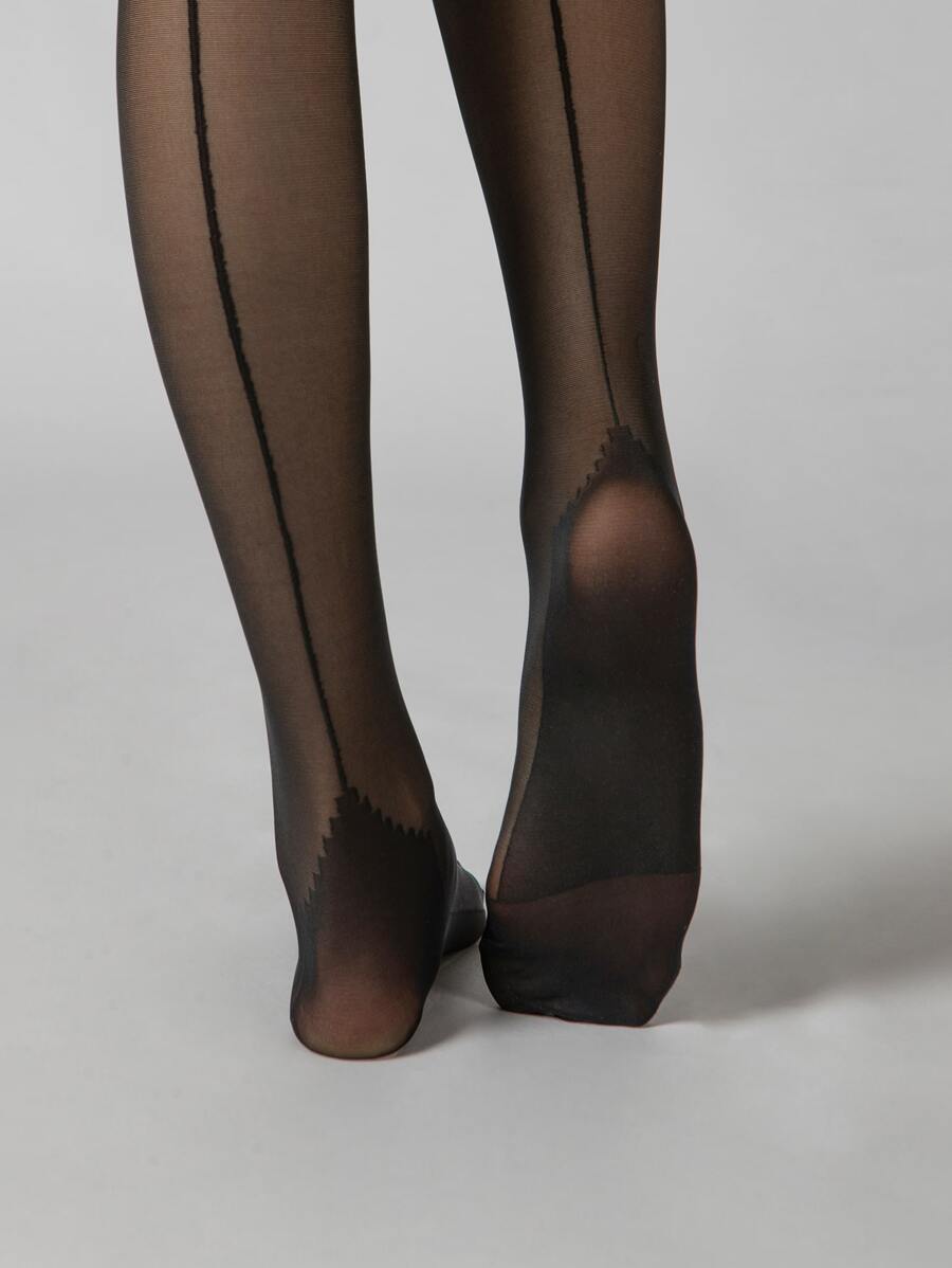 1 قطعة جوارب ضيقة سوداء بطبعات رسومية 20 دنير، مريحة