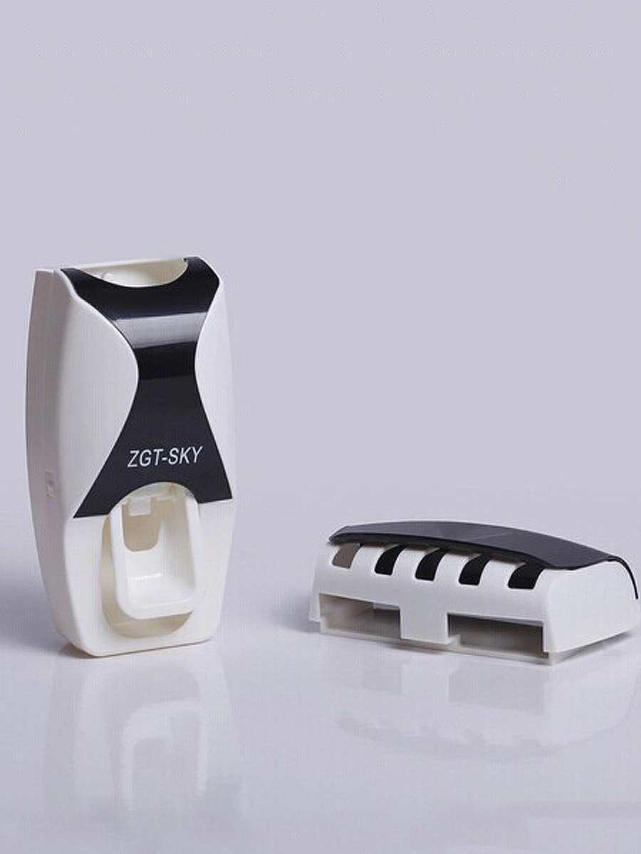 موزع معجون أسنان أوتوماتيكي وحامل فرشاة أسنان بـ 5 فتحات وعصارة معجون أسنان مقاومة للغبار مثبتة على الحائط للحمام