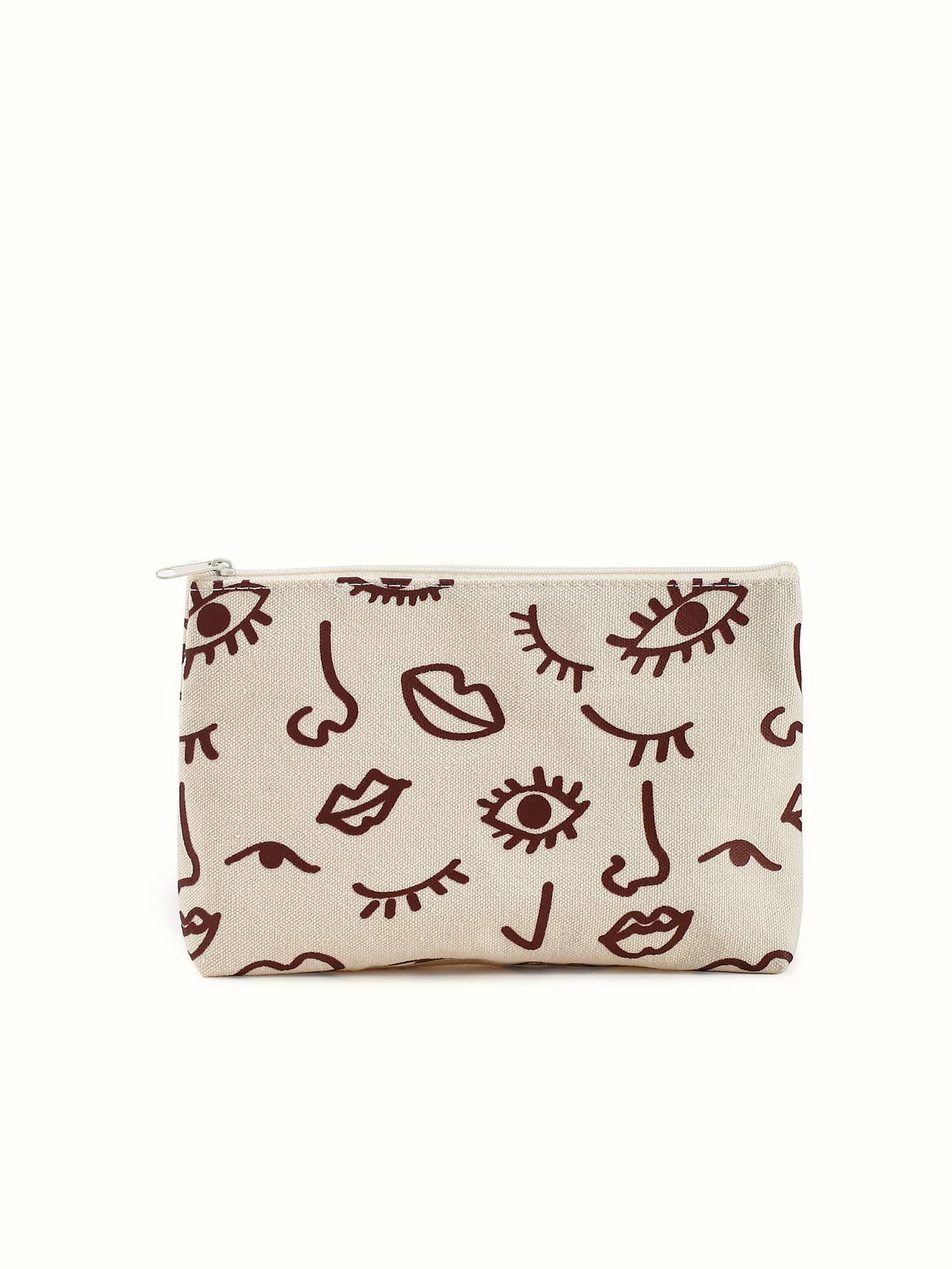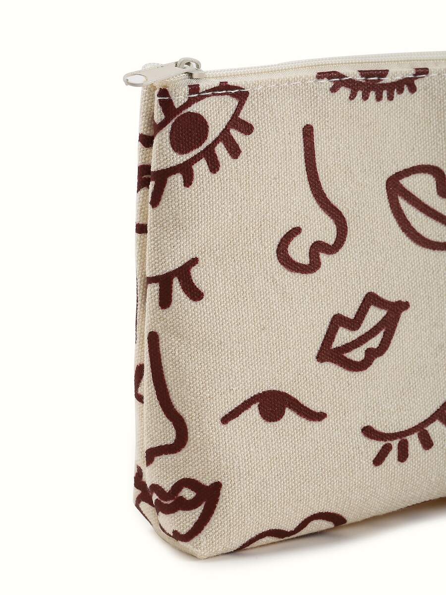 ملامح وجه إبداعية حقيبة مكياج قماشية عالية السعة للنساء والفتيات
