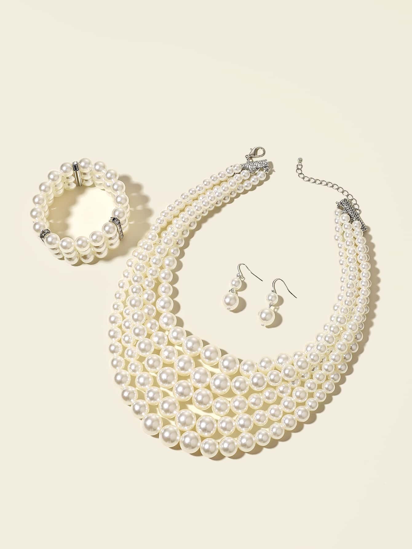 عقد مزين باللؤلؤ الصناعي وأساور وأقراط