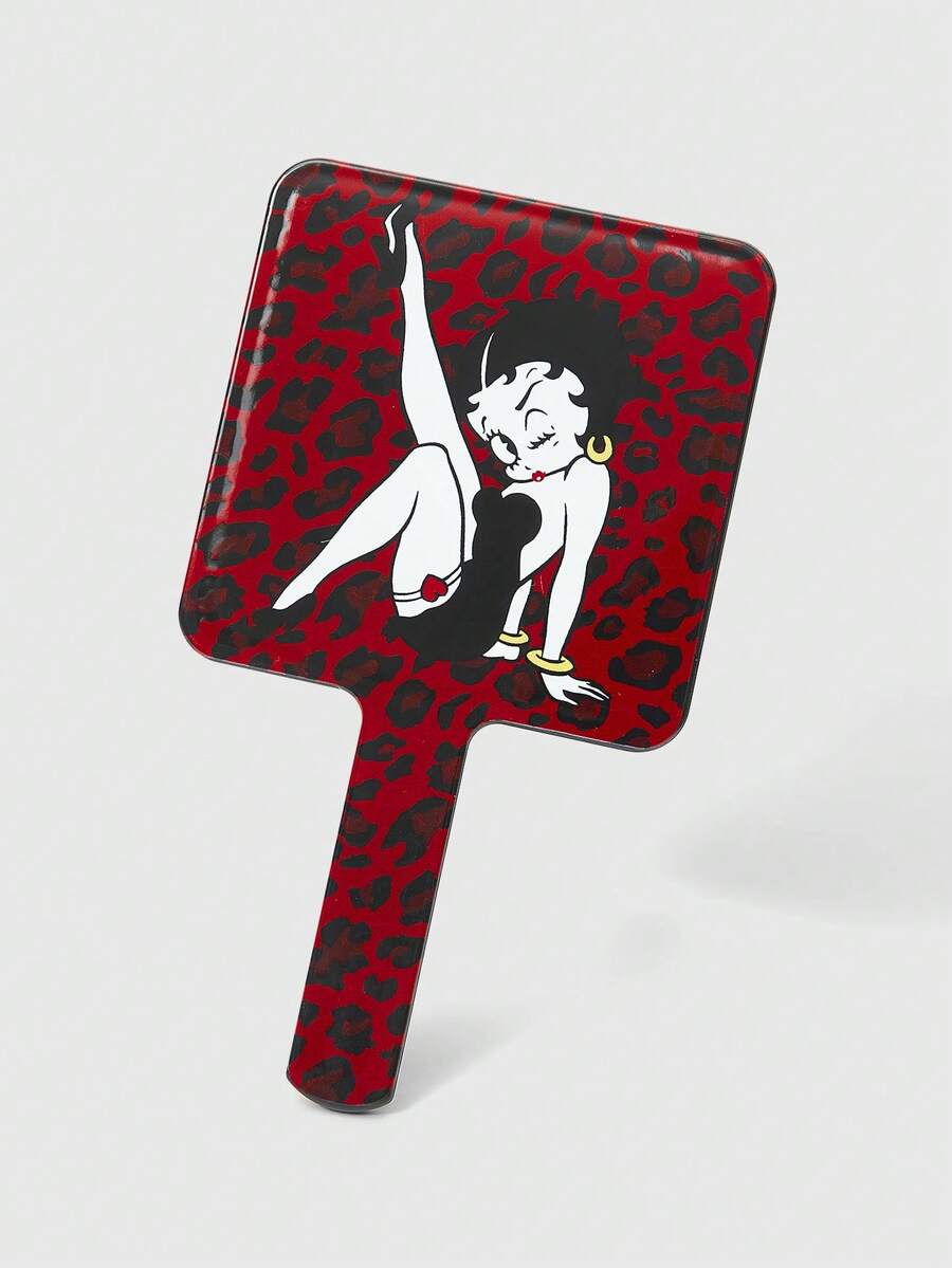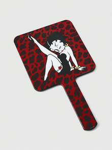 Betty Boop | ROMWE مرآة يدوية مربعة ذات رسم تخطيطي، مقبض بلاستيك شفاف مرآة مكياج للمكتب، محمولة قطعة واحدة