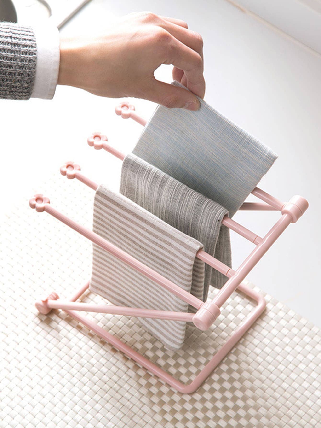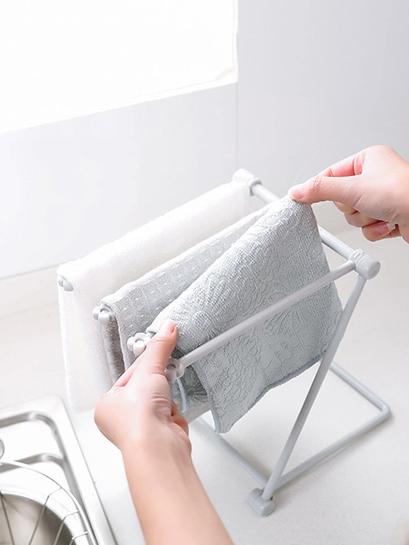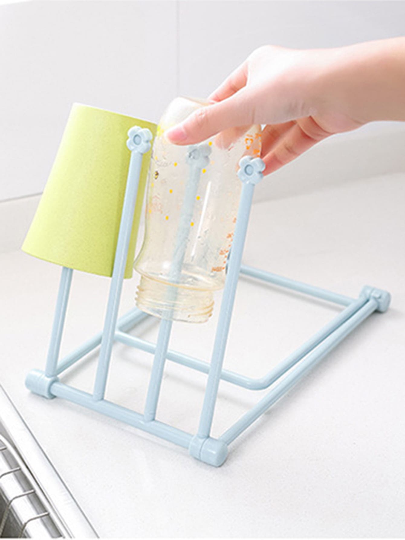 رف استنزاف بلاستيكي قابل للطي ورف تخزين إبداعي بسيط وزجاجة ومنشفة