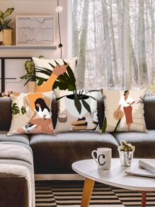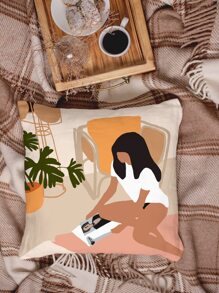 غطاء وسادة بطباعة فتاة بدون حشو - 1 قطعة