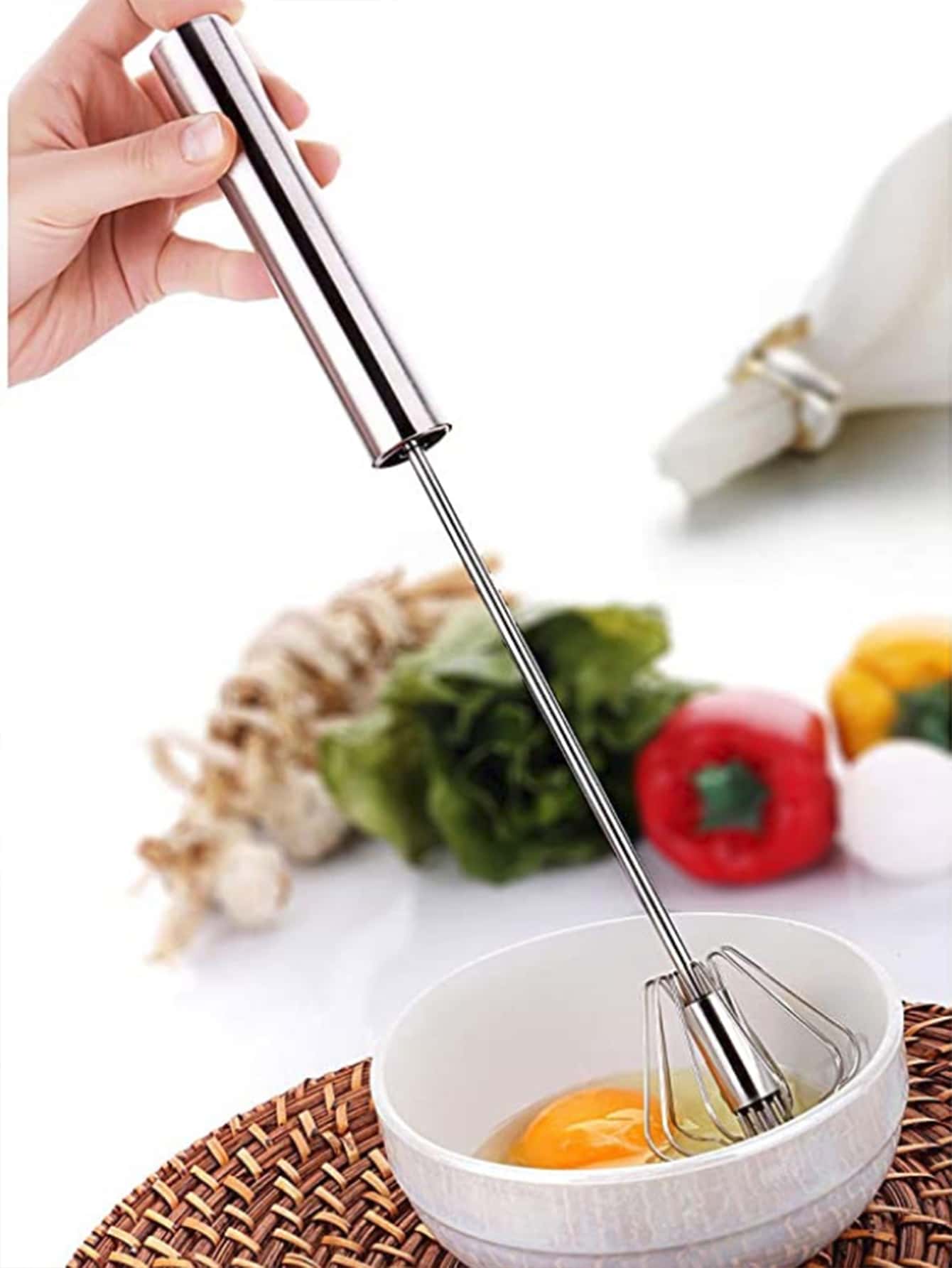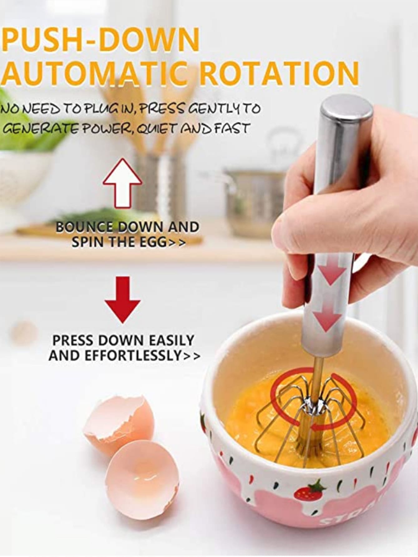 خافق بيض دوار نصف أوتوماتيكية للاستخدام المنزلي وخفاقة جهاز مقشدة دوارة من الفولاذ المقاوم للصدأ 304 وأداة مطبخ خلاط يدوي