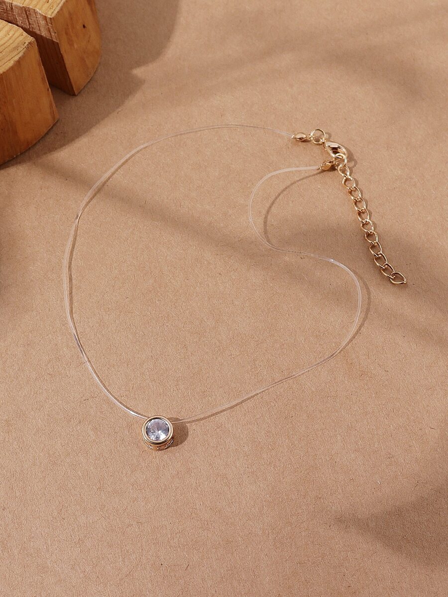 قلادة خيط سمكة شفافة بخرز من الزركونيا بتصميم بسيط قطعة واحدة، مناسبة للنساء لارتداء مناسب للحياة اليومية الشخصية