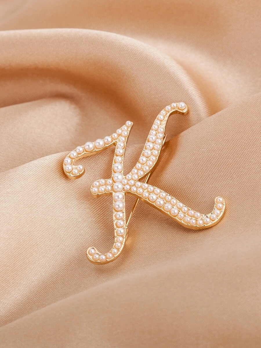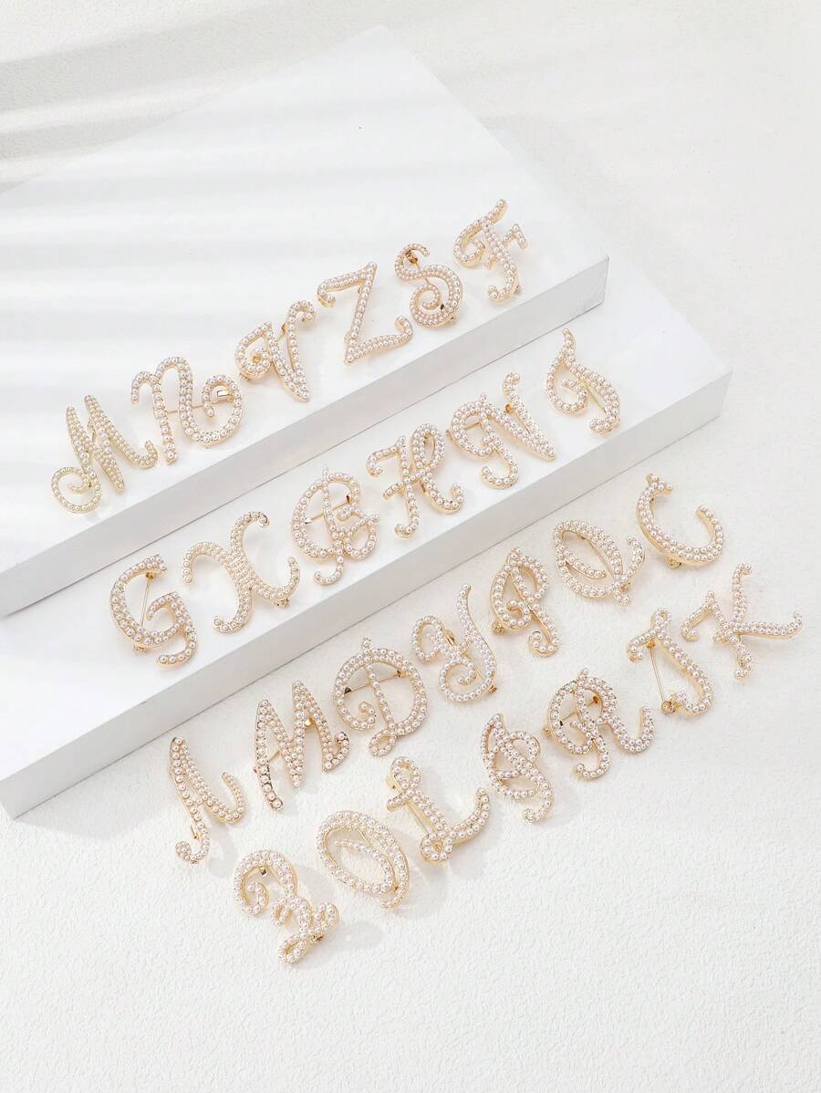 دبوس بروش حرف من مزيج كاذب من اللؤلؤ لحفلات الزفاف/حفلات الموسيقى/يوم المعلم/يوم الأب/يوم الأم/ارتداء يومي الأصدقاء المقربين الأفضل