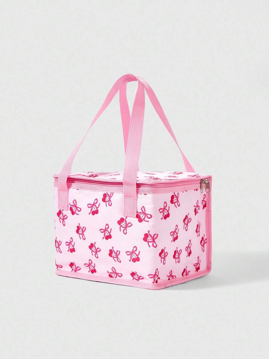 Kawaii حقيبة غداء معزولة بطبعة كرز وردي كاواييي قطعة واحدة
