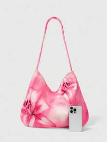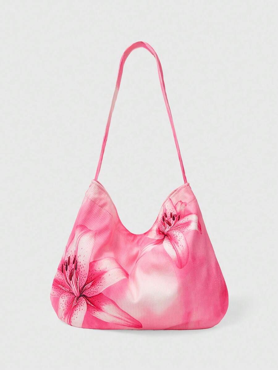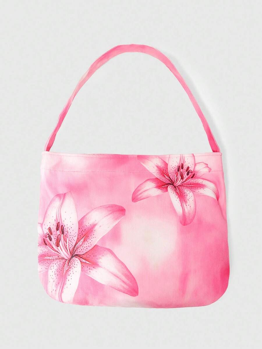 Fairycore حقيبة كبيرة السعة ذات الكتف مع طبعة زهرة اللوتس الوردية، مناسبة للتخييم والسفر والتسوق والمدرسة والعمل وغيرها من المناسبات