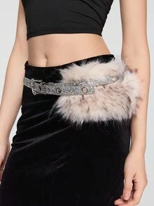 Grunge Punk حزام فرو بنمط بانك قطعة واحدة، حزام عيون مرصع بالترتر الفضي بموضة Y2K، إكسسوار زخرفي شخصي للخصر