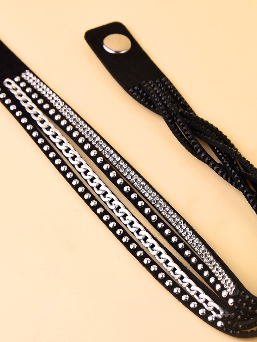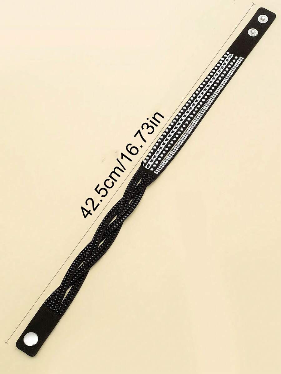 قطعة واحدة سوار جلد مزخرف بالراين ستون بطراز بنكي للنساء