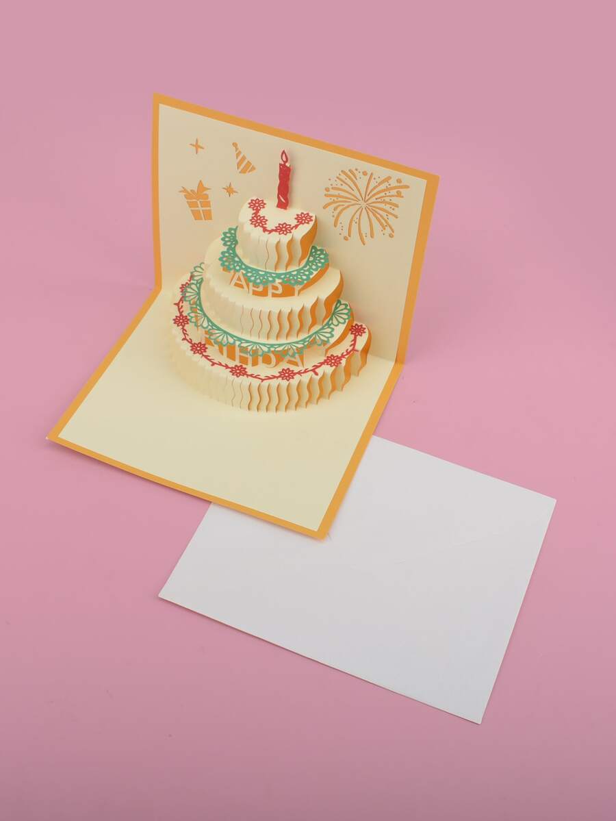 بطاقة تهنئة كيك عيد ميلاد 3D عشوائي قطعة واحدة
