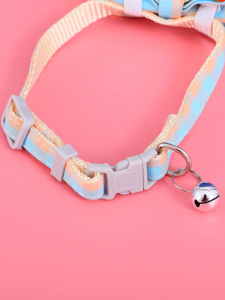 طوق حيوانات أليفة لون عشوائي مربعات ملونة مزخرف بقوس قطعة واحدة
