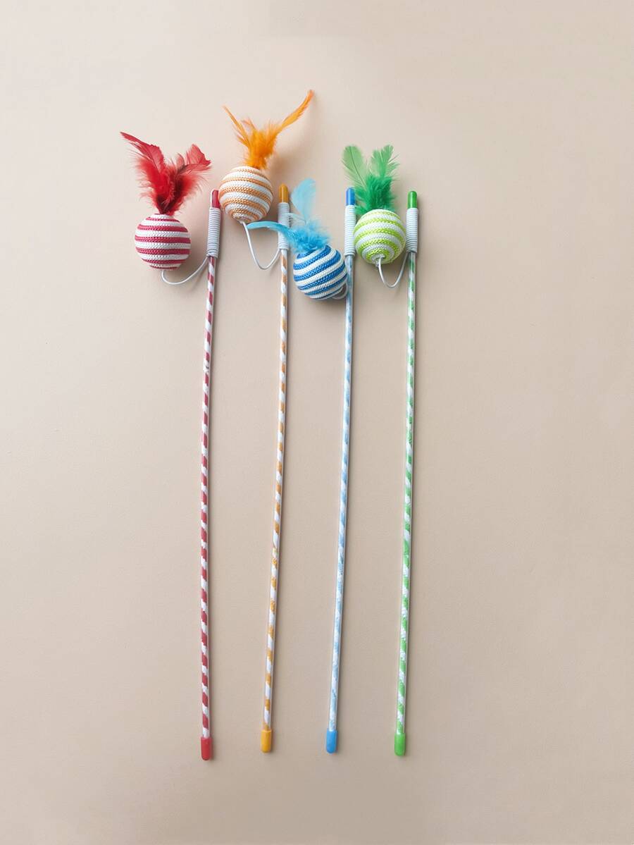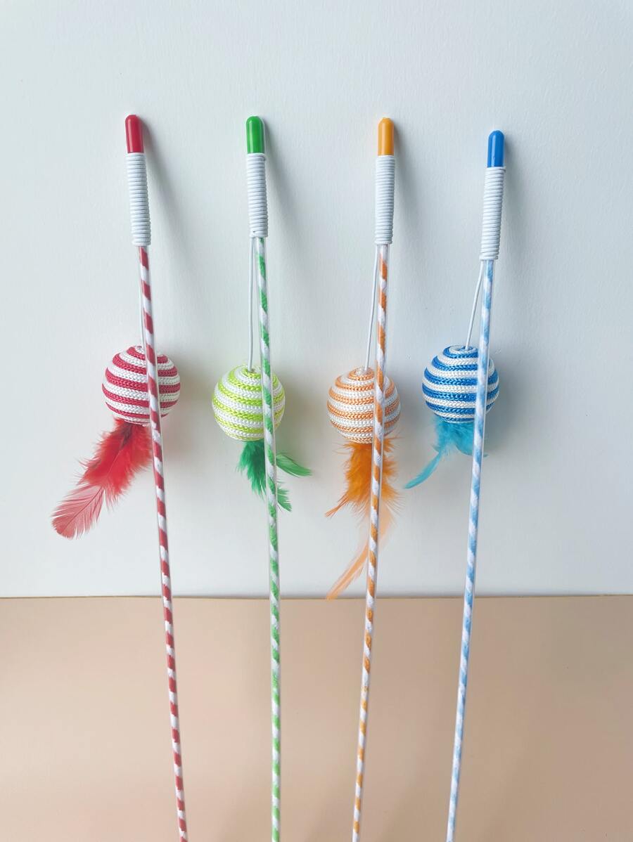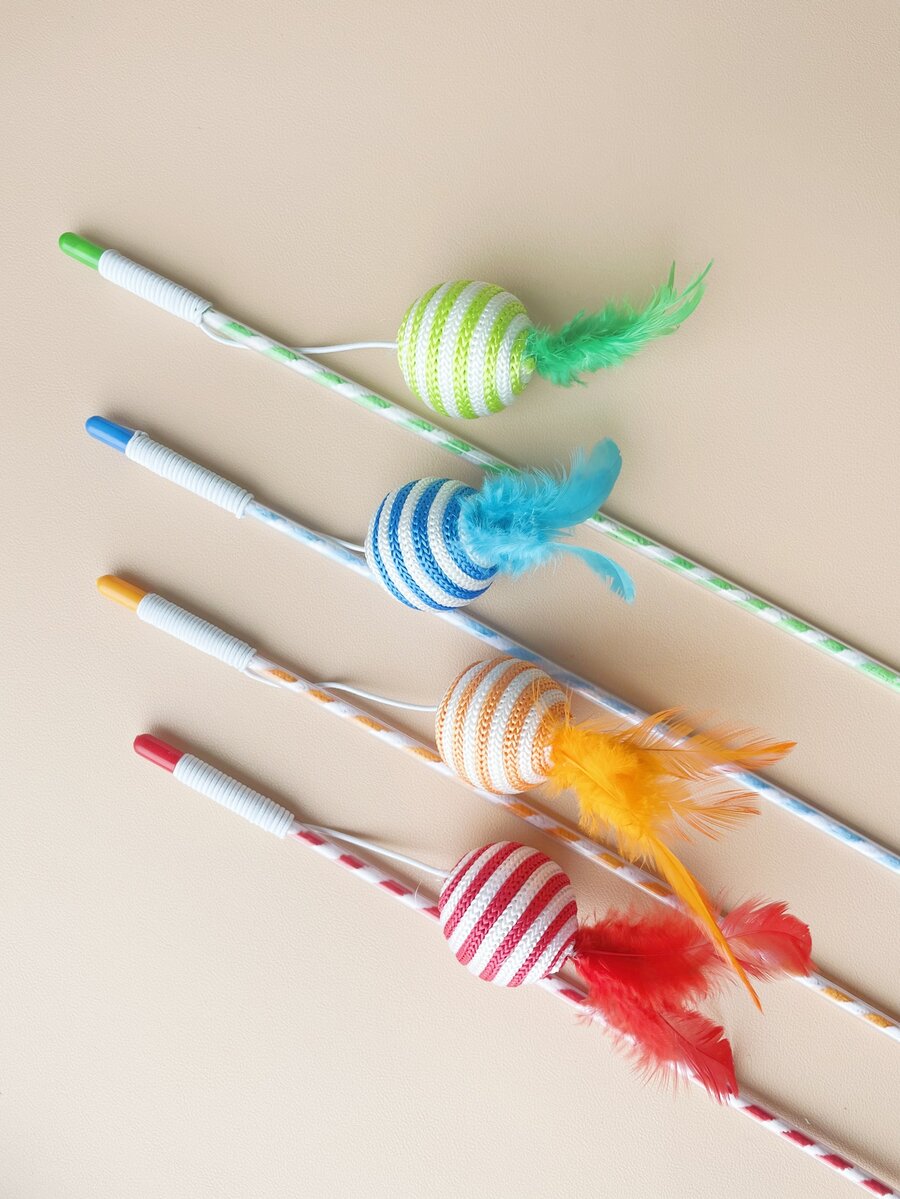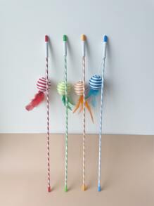 عصا دعابة القط عشوائي مزخرف بريش قطعة واحدة