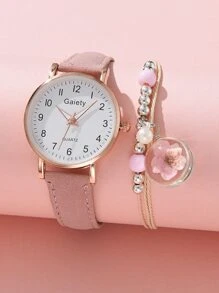 ساعة كوارتز بمؤشر دائري قطعه واحده مع سوار قطعه واحده