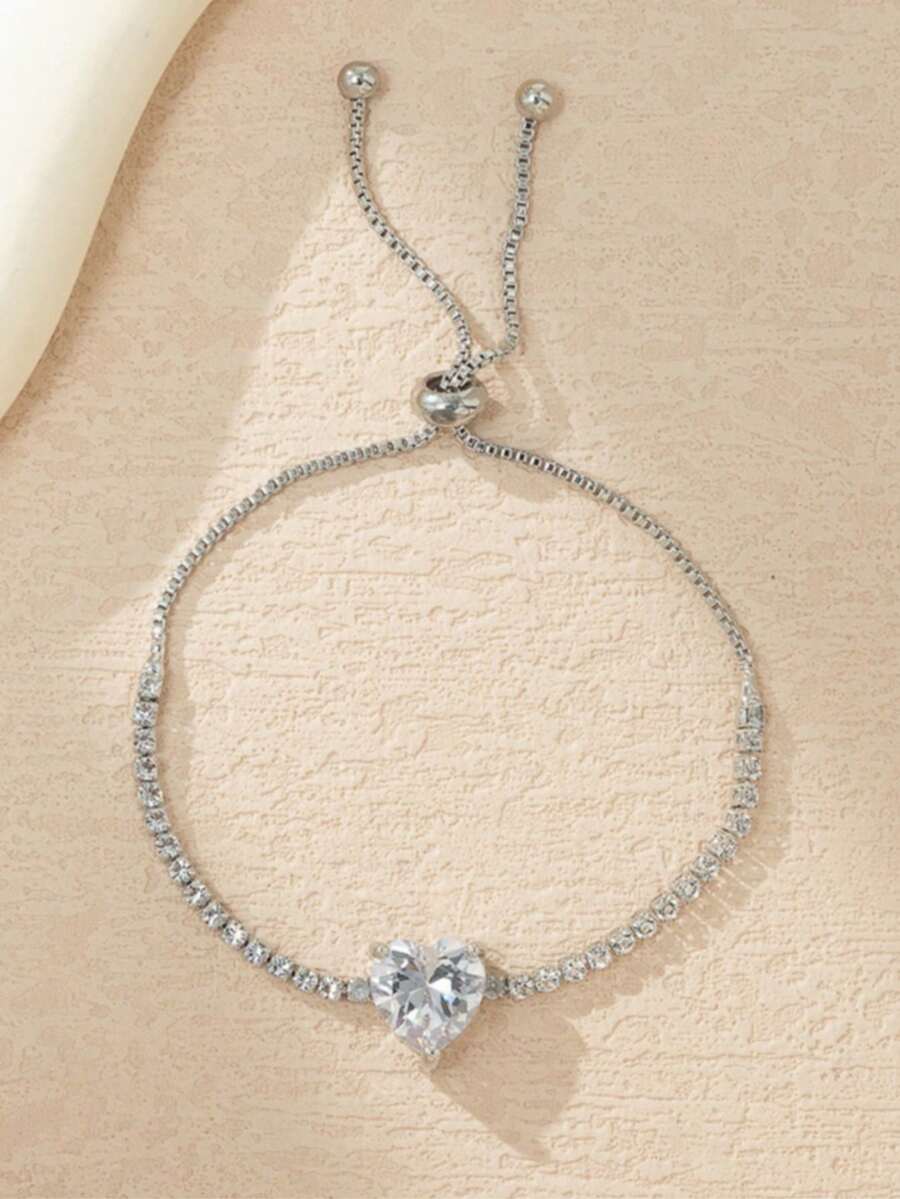 1 قطعة سوار انيق مرصع بحجر المكعب على شكل قلب باللون الذهبي/الفضي مناسب للنساء