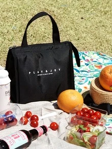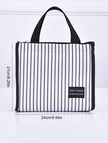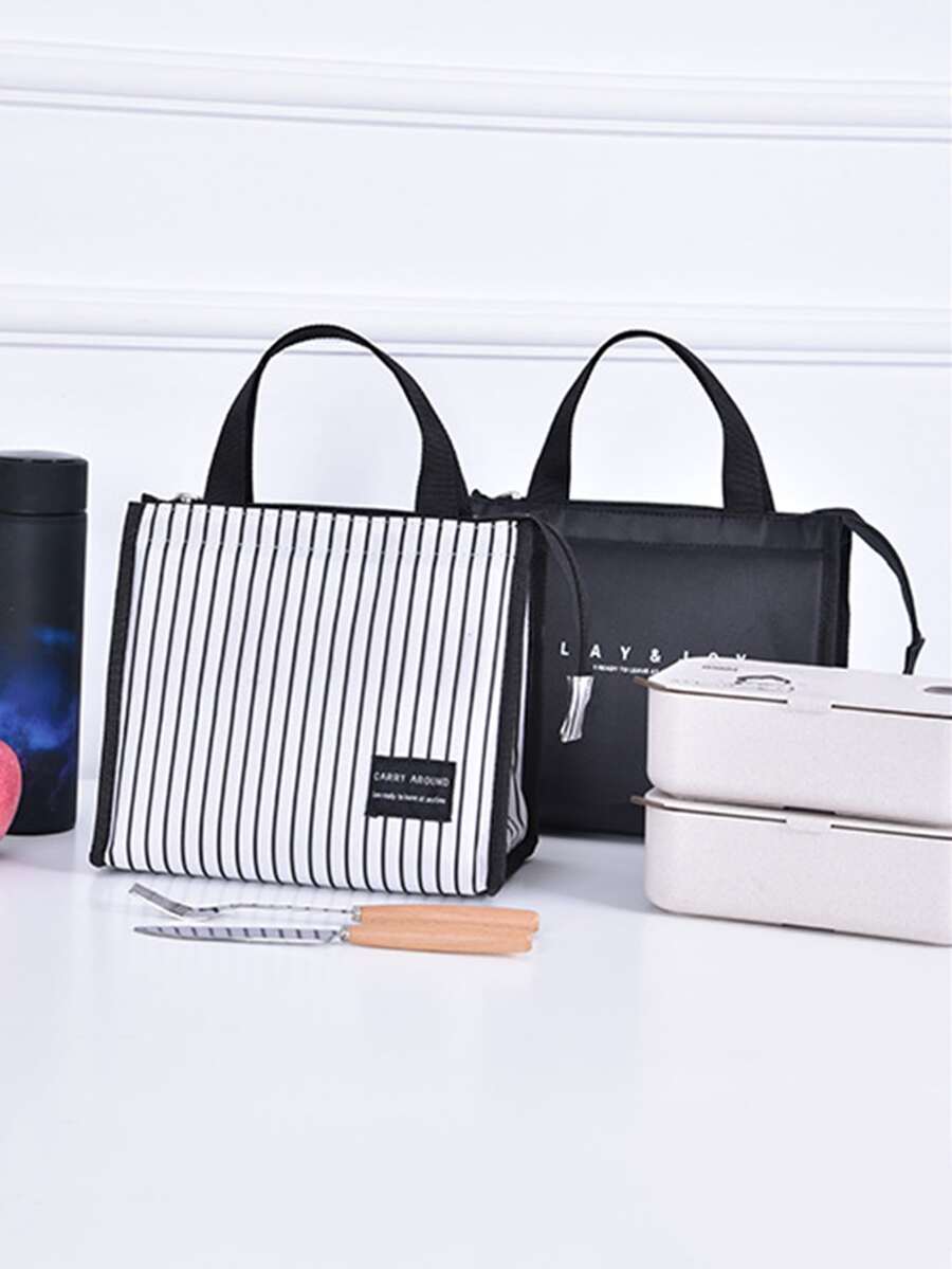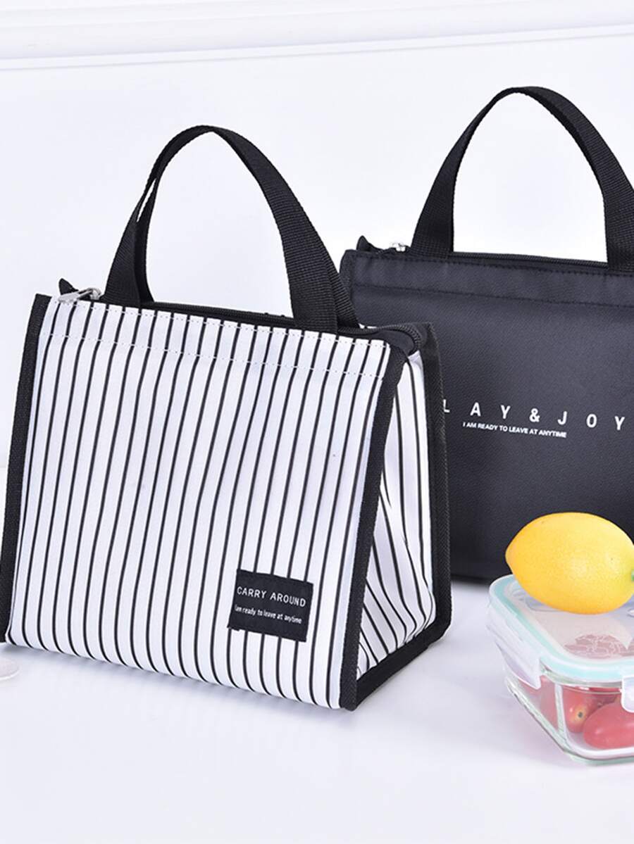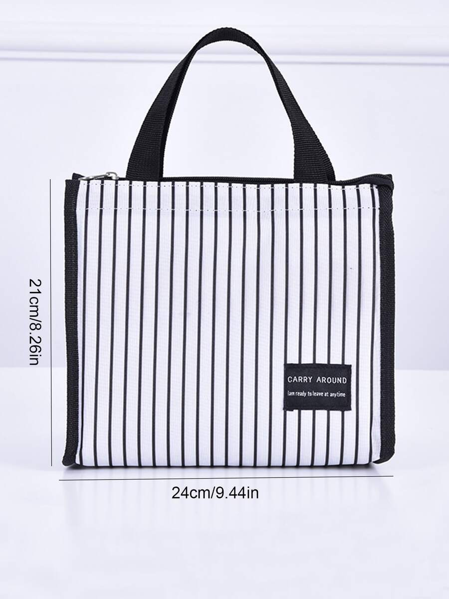 قطعة واحدة أسلوب أساسي أسود و أبيض مخطط محمول صندوق طعام , عازل حقيبة , النزهة حقيبة