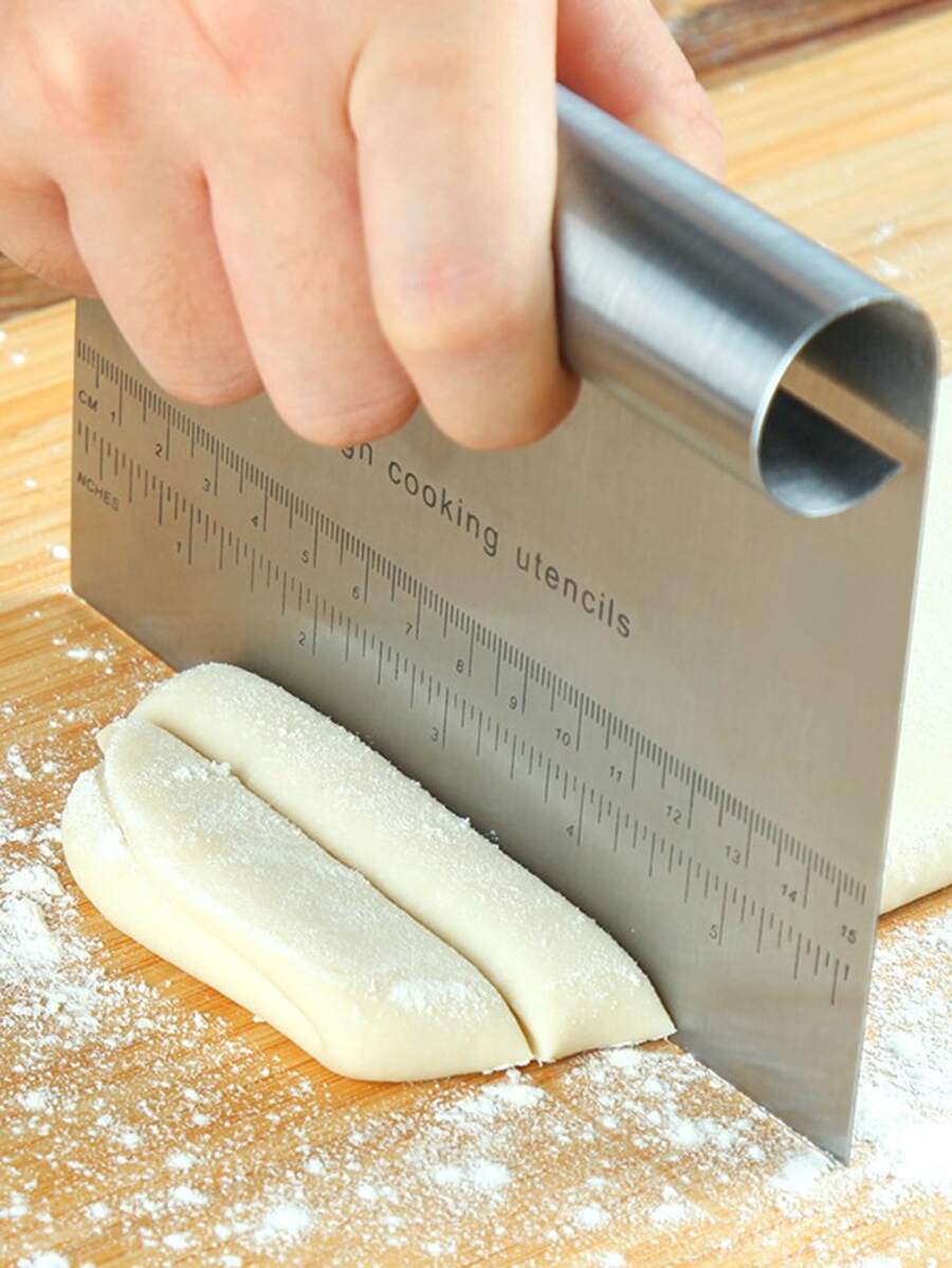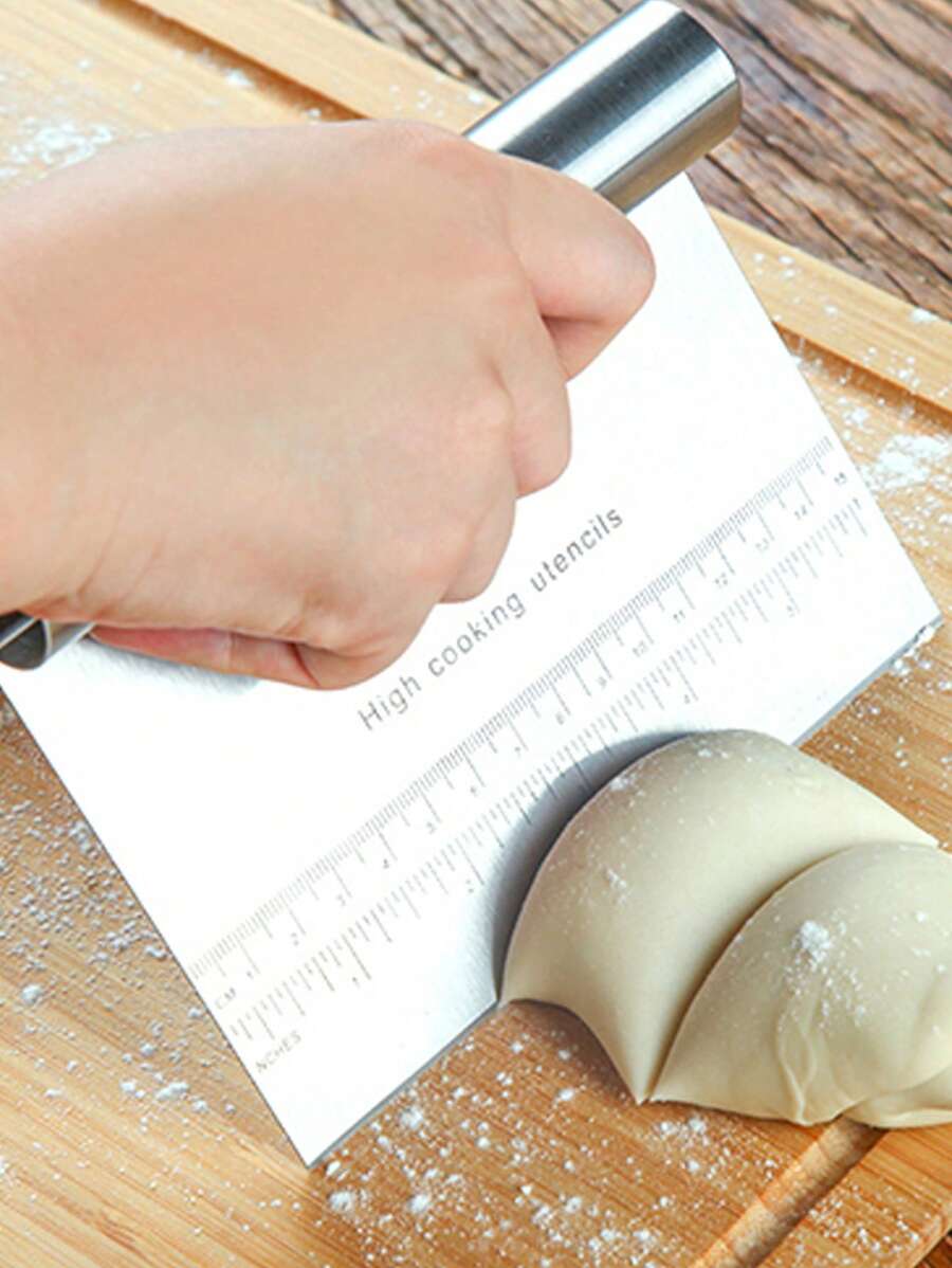 قطعة واحدة من مكشطة المعجنات من الفولاذ المقاوم للصدأ ، قاطعة ، مفرمة ، مع مقياس قياس ، سكين فاصل خبز المعجنات ، أداة الخبز ، لوازم المطبخ