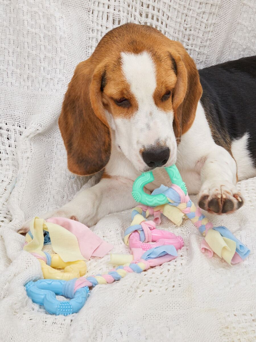 لعبة أحبال أربطة عقدة حيوانات أليفة مصنوعة من Tpr ، مناسبة للعب الحيوانات الأليفة الداخلي الصغيرة والمتوسطة الحجم ، مزيج من الألوان