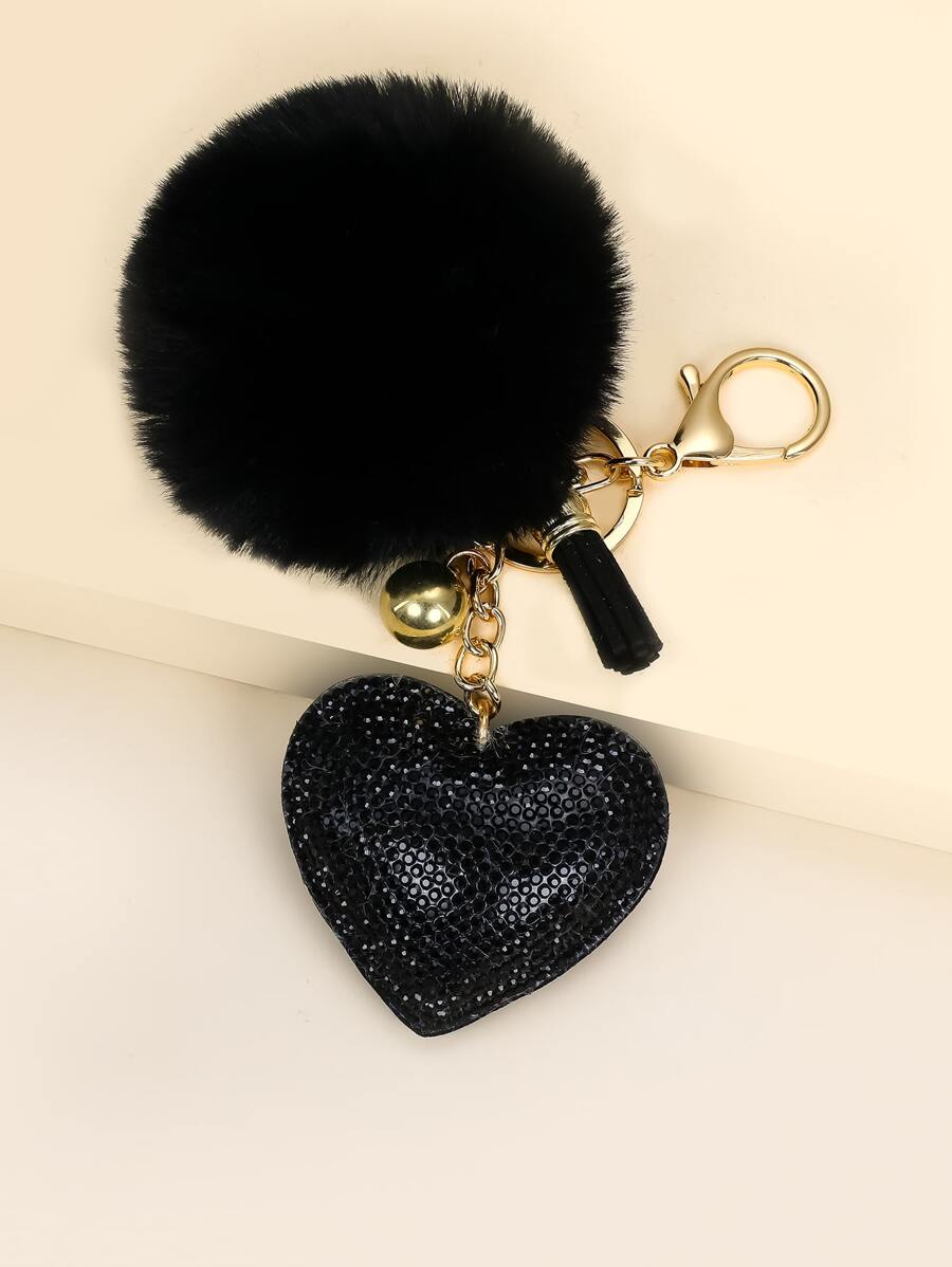 قلب مرصع بالراين ستون مع حروف الحب وكرة صوف، قلادة مفاتيح كورية جميلة للنساء، هدية مثالية لعيد الحب، عيد الأم، هدايا الزفاف، إكسسوارات السيارة، تعليقة حقيبة، حقيبة ظهر للمدرسة، غوث Y2k