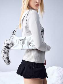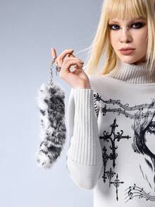Goth 1 قطعة ذيل حيوان وثيرة بتدرج أسود وأبيض على طراز Y2K الرجعي الأنيق، مناسب للكوسبلاي والاستخدام اليومي للنساء وكهدية للمناسبات، سواء بنمط النمر أو الزرافة أو الزيبرا، قلادة حقيبة