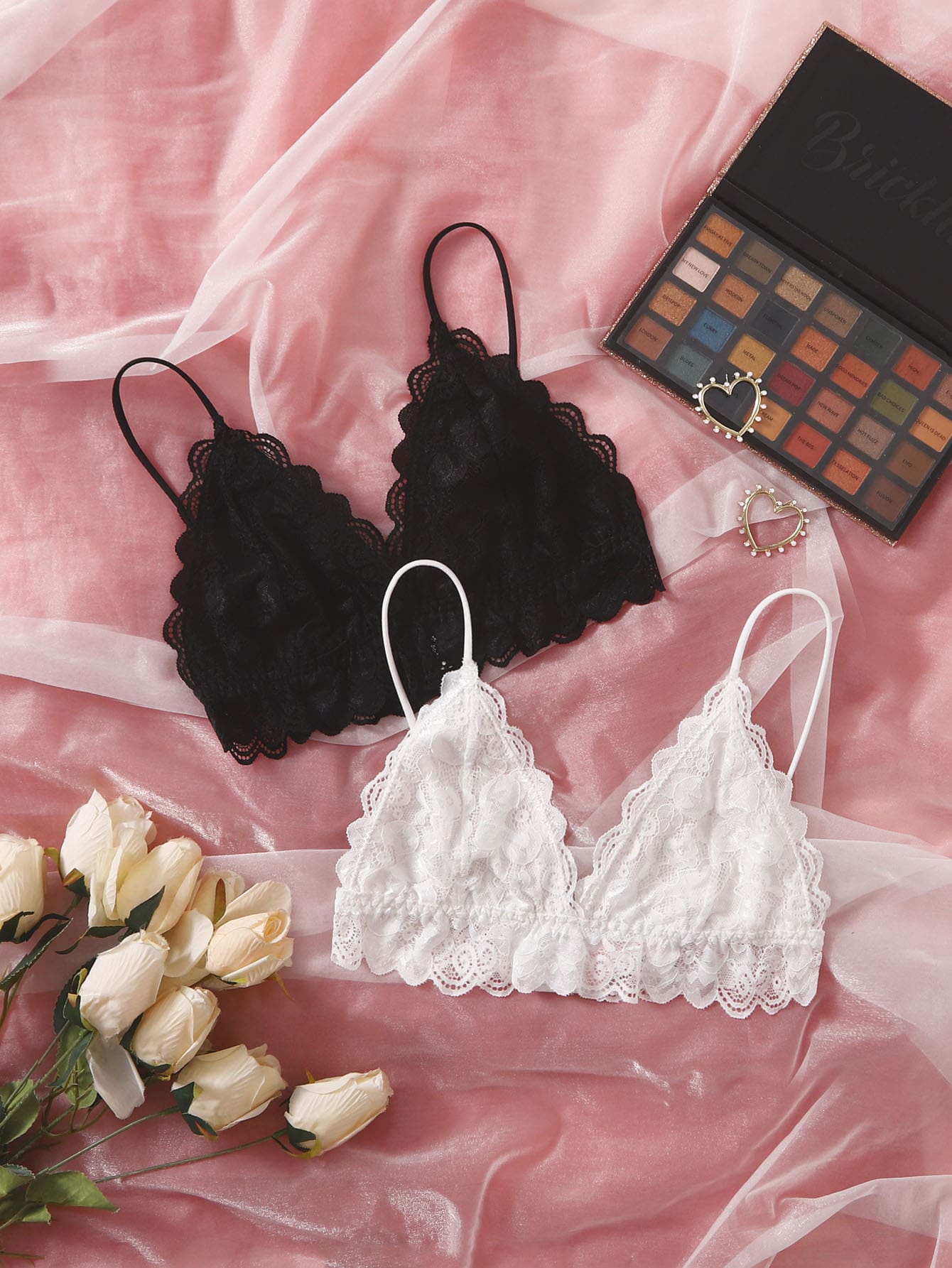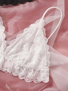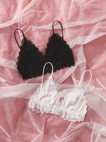 طقم ملابس داخلية علوية بتنورة دانتيل مطرزة بتصميم مموج قطعتان