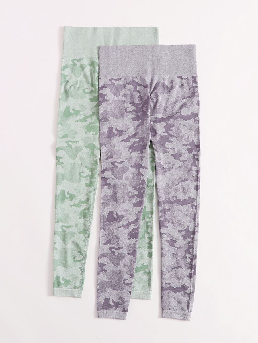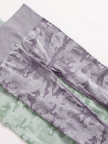2 طقم سروال رياضي مطاطي قابل للشد كامل بطبعة الكامو