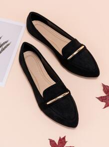 حذاء مسطح أنيق للنساء موديل خريف 2025 من معدن أسود، موديل لوفر بتصميم أنيق وأصبع قدم مدبب