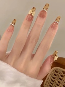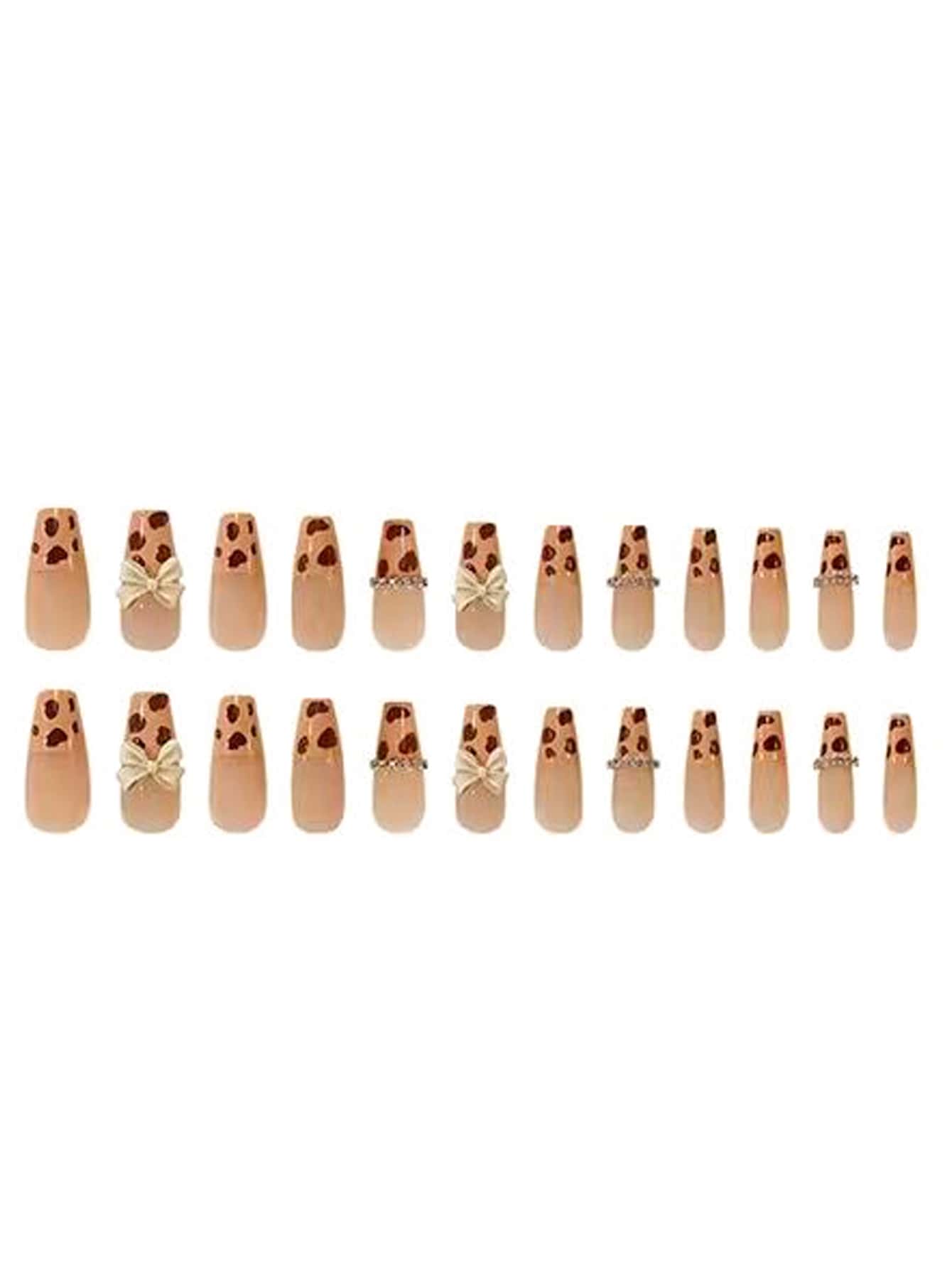 24 قطعة نعش ثلاثي الأبعاد مزخرف بعقدة الفراشة أظافر اصطناعية و ورقة واحدة شريط