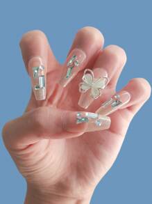 24 قطعة نعش فراشة ثلاثي الأبعاد زخرفة أظافر اصطناعية و ورقة واحدة شريط