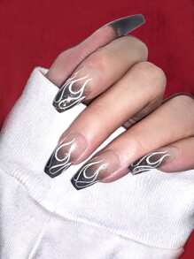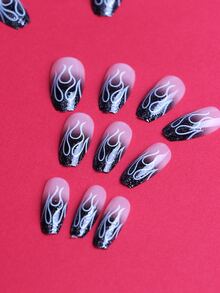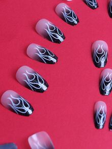 Grunge Punk 24 قطعة نمط شعلة أظافر اصطناعية مع ورقة واحدة شريط