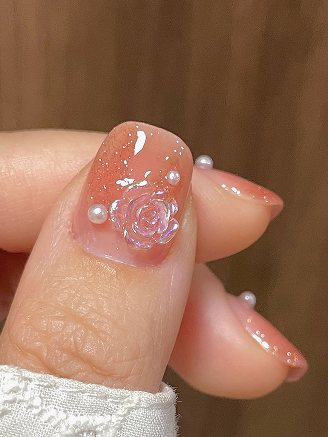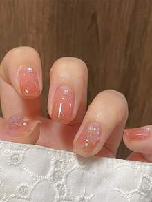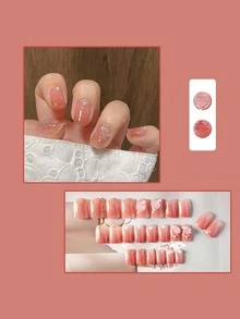 أظافر اصطناعية مربع ثلاثي الأبعاد مزخرف بزهر 24قطع و ورقة واحدة شريط