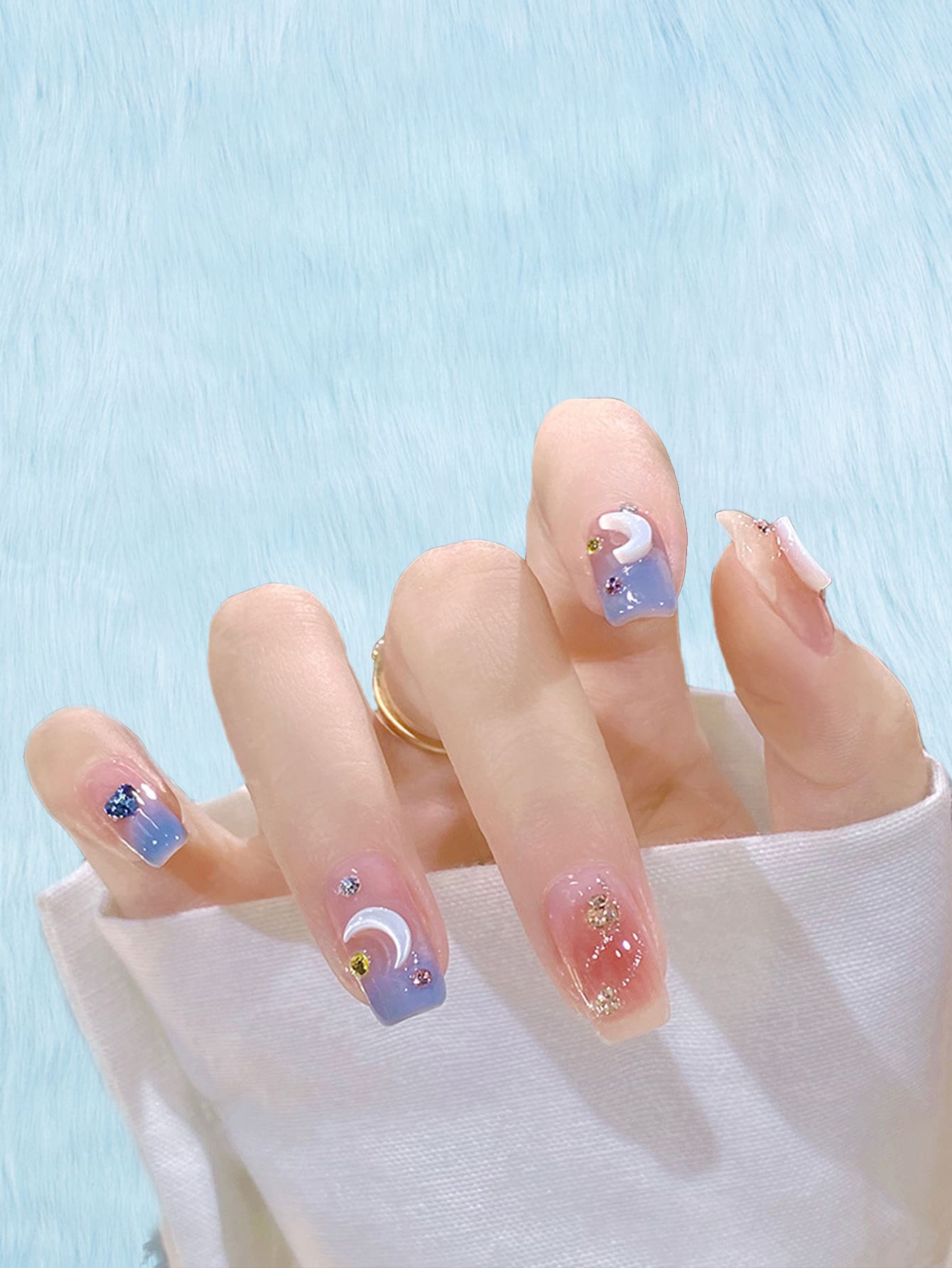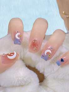 24 قطعة مربع ثلاثي الأبعاد زخرفة قلب أظافر اصطناعية و ورقة واحدة شريط