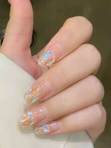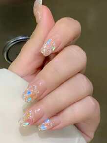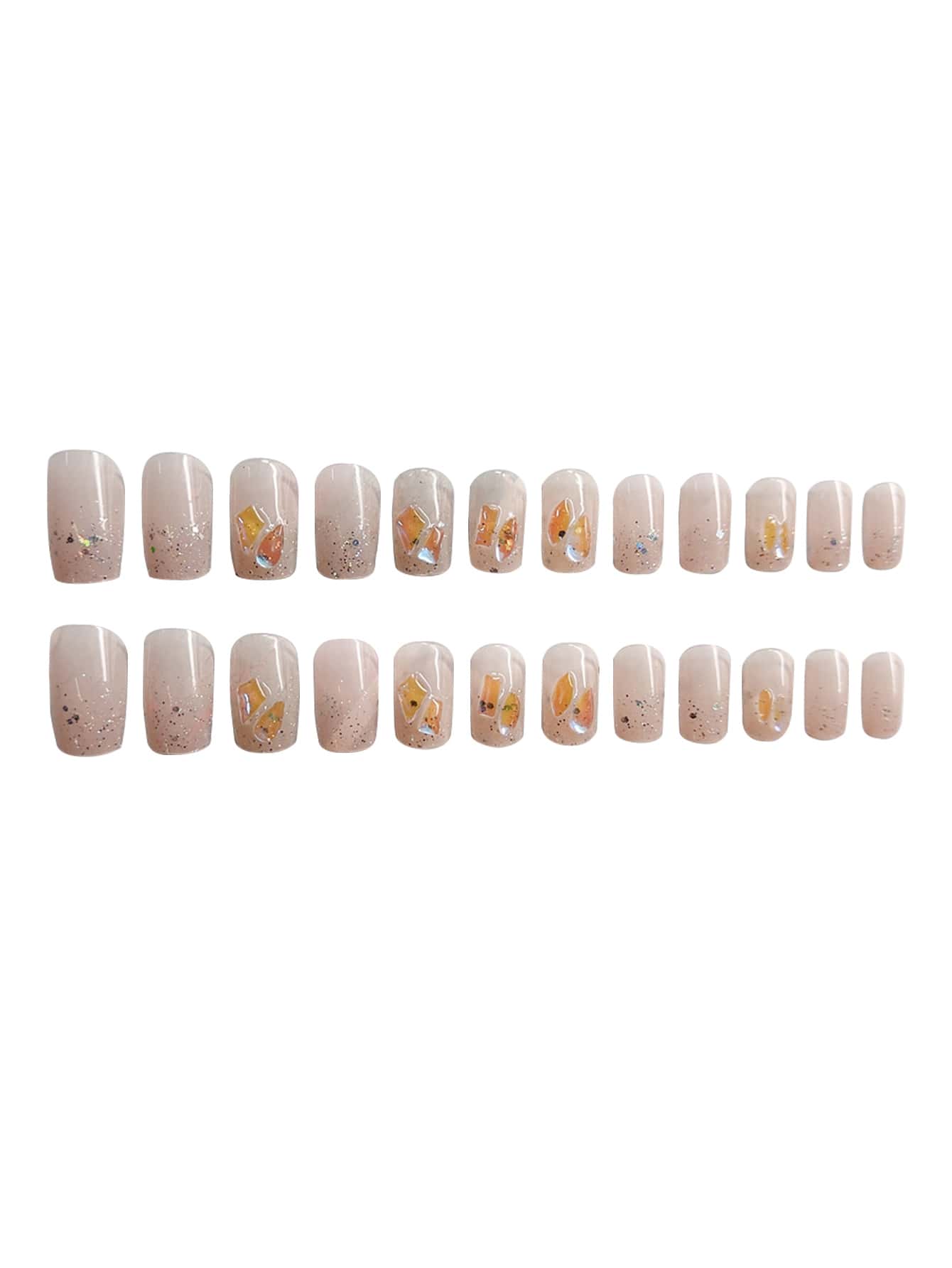 24 قطعة مربع ثلاثي الأبعاد بديكور حجر الراين أظافر اصطناعية و ورقة واحدة شريط