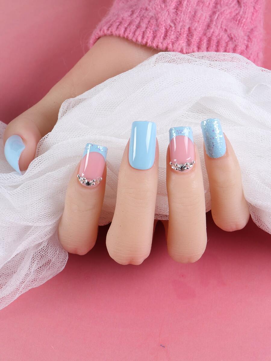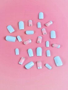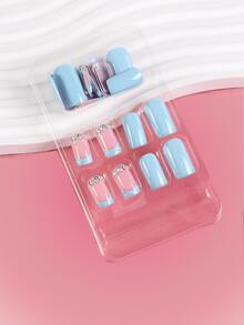 24 قطعة مربع ثلاثي الأبعاد بديكور حجر الراين أظافر اصطناعية و ورقة واحدة شريط