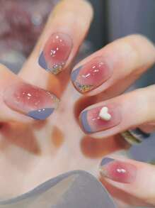24 قطعة مربع بطباعة قلب أظافر اصطناعية و ورقة واحدة شريط