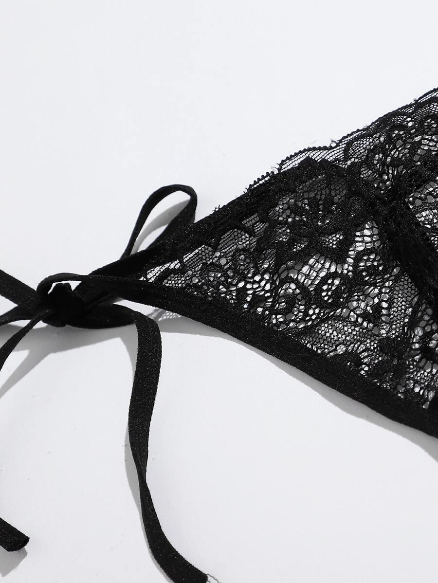طقم سروال رباط زهري جانبي ذو سلسلة للملابس الداخلية الجذابة، قطعتان