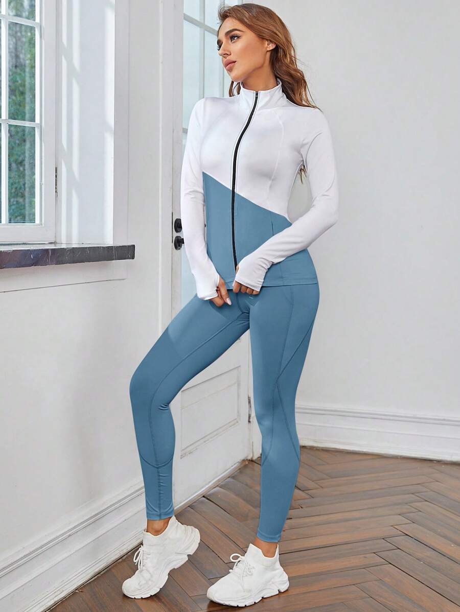دعت ملابس لياقة بلون أبلوك 2 قطعة ، جاكيت وجاكيت ولباس تدريب، مجموعة ملابس لصالة الألعاب الرياضية والمرأة