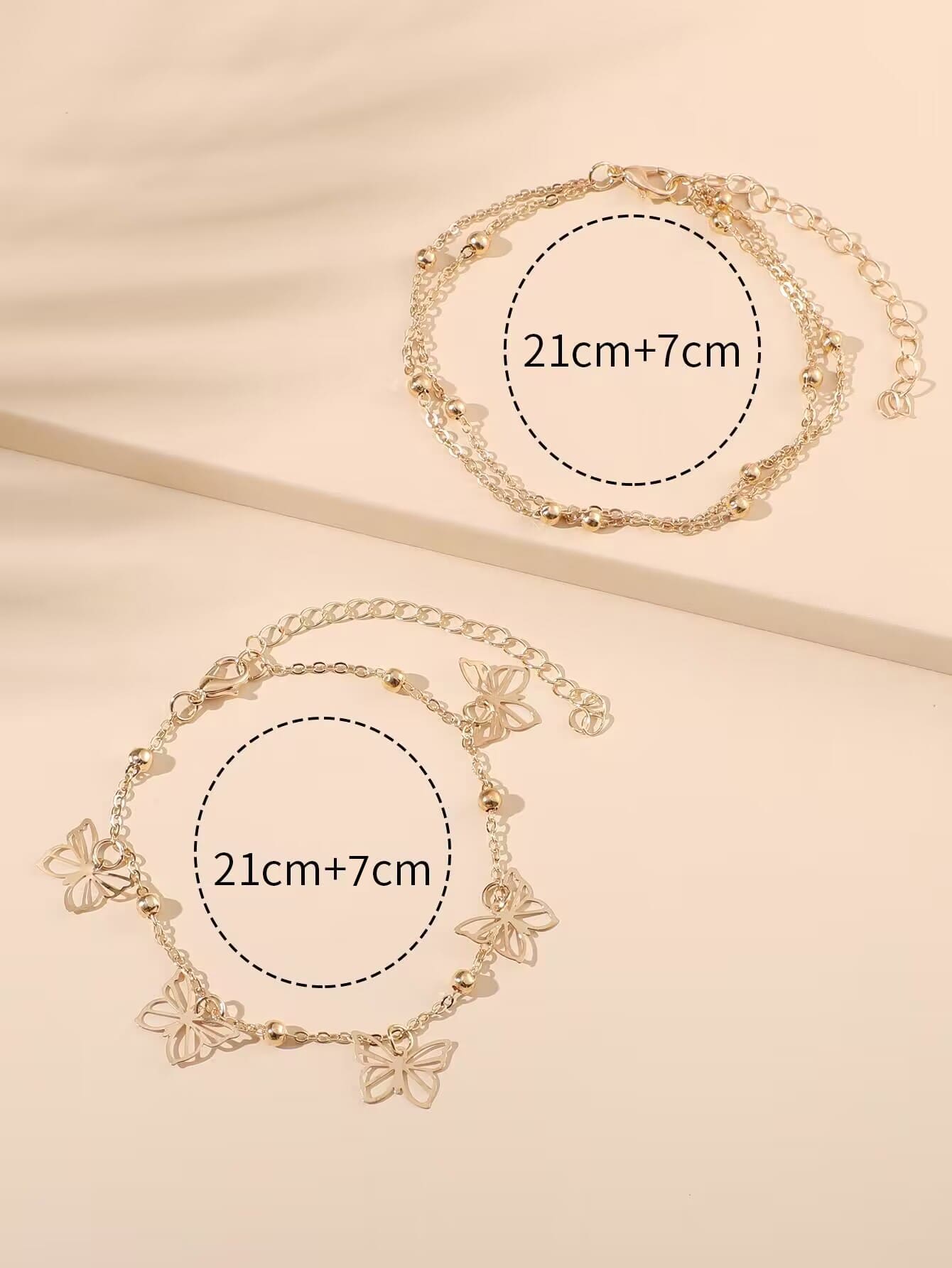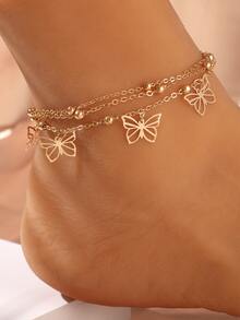 2 قطع بتعليقة فراشة خلخال نحاس مجوهرات