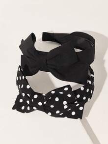 قطعتان من شريطة الرأس الكلاسيكية الكبيرة الحجم بنقشة نقاط وفيونكة، ذات حافة عريضة وشريطة رأس عالية، إكسسوارات شعر عصرية لعيد الحب، شريطة شعر، حلقة شعر، قطعة رأس