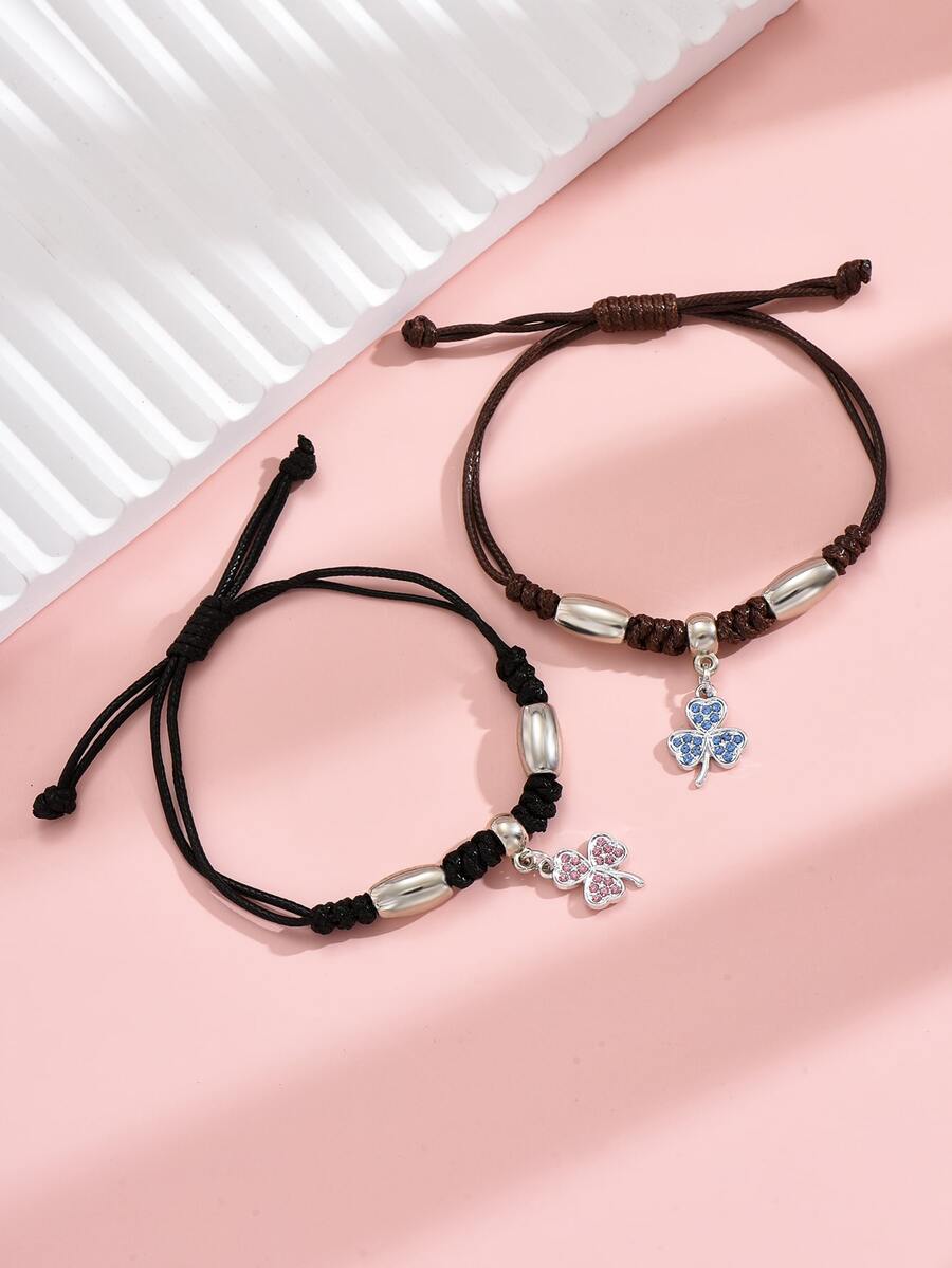 سوار زوج حجر الراين اربع اوراق برسيم حلية 2 قطع