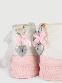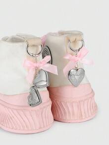 Kawaii قطعتان من الزينة على شكل عقدة الفراشة وقلب وردي مناسبة لأحذية قماش الطلاب والأحذية الرياضية